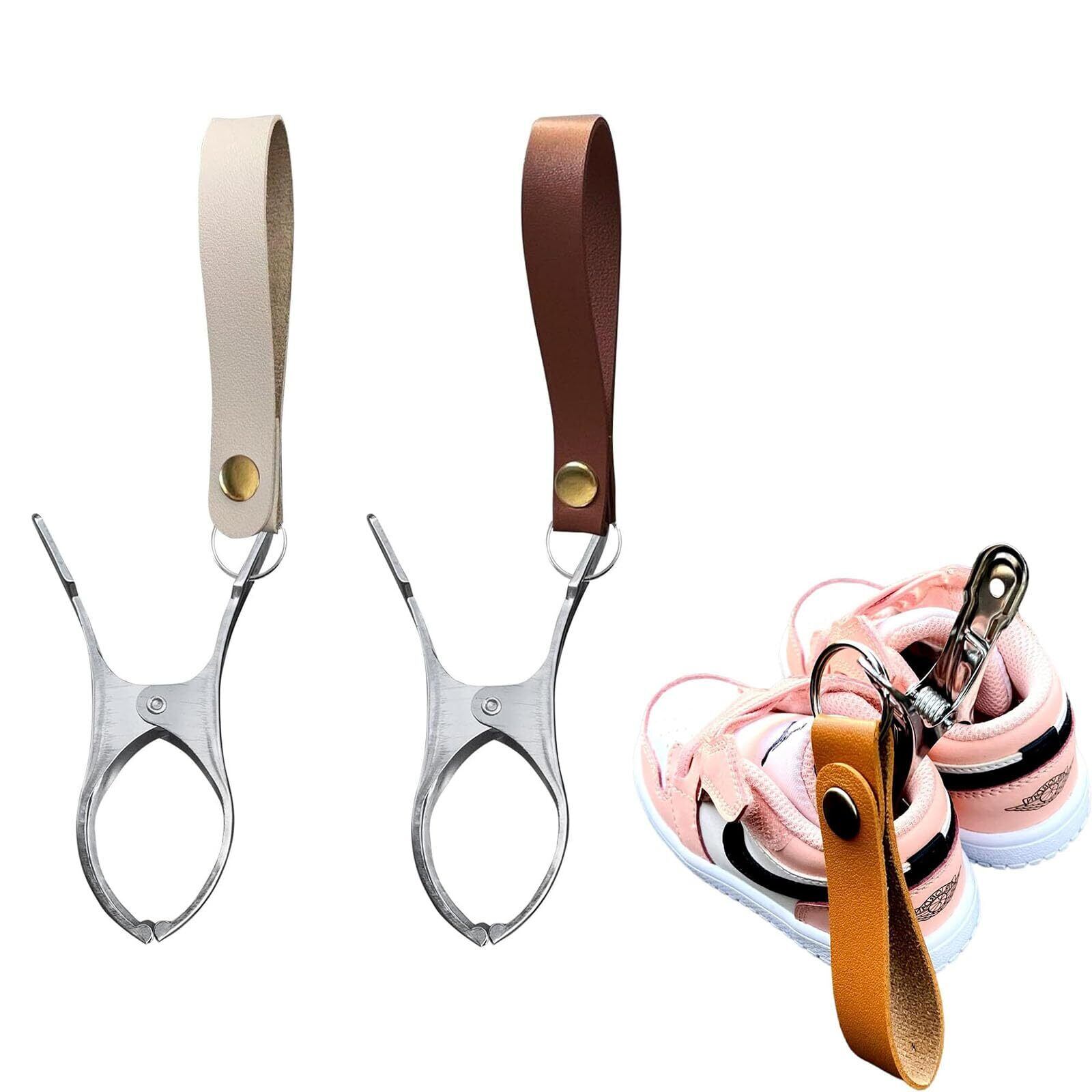 OptiPro シューズクリップ ベビーカーに吊り下げ可能 2個入り PU レザー製 ベビーカーアクセサリー ザー ベビー靴 お出かけ 便利アイテム 赤ちゃん パーツ (アプリコット+ブラウン)
