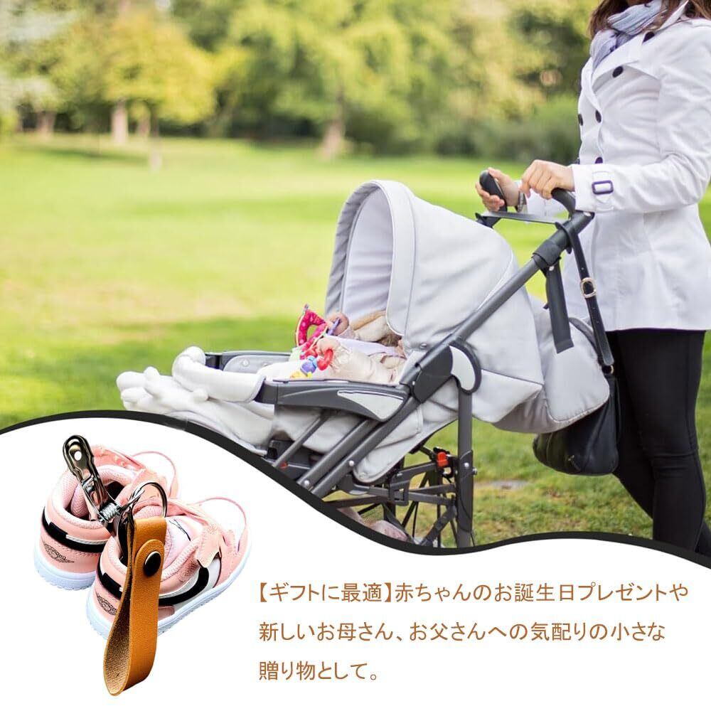 【2022最新】OptiPro シューズクリップ ベビーカーに吊り下げ可能 2個入り PU レザー製 ベビーカーアクセサリー ザー ベビー靴 お出かけ 便利アイテム 赤ちゃん パーツ (アプリコット+ブラウン)