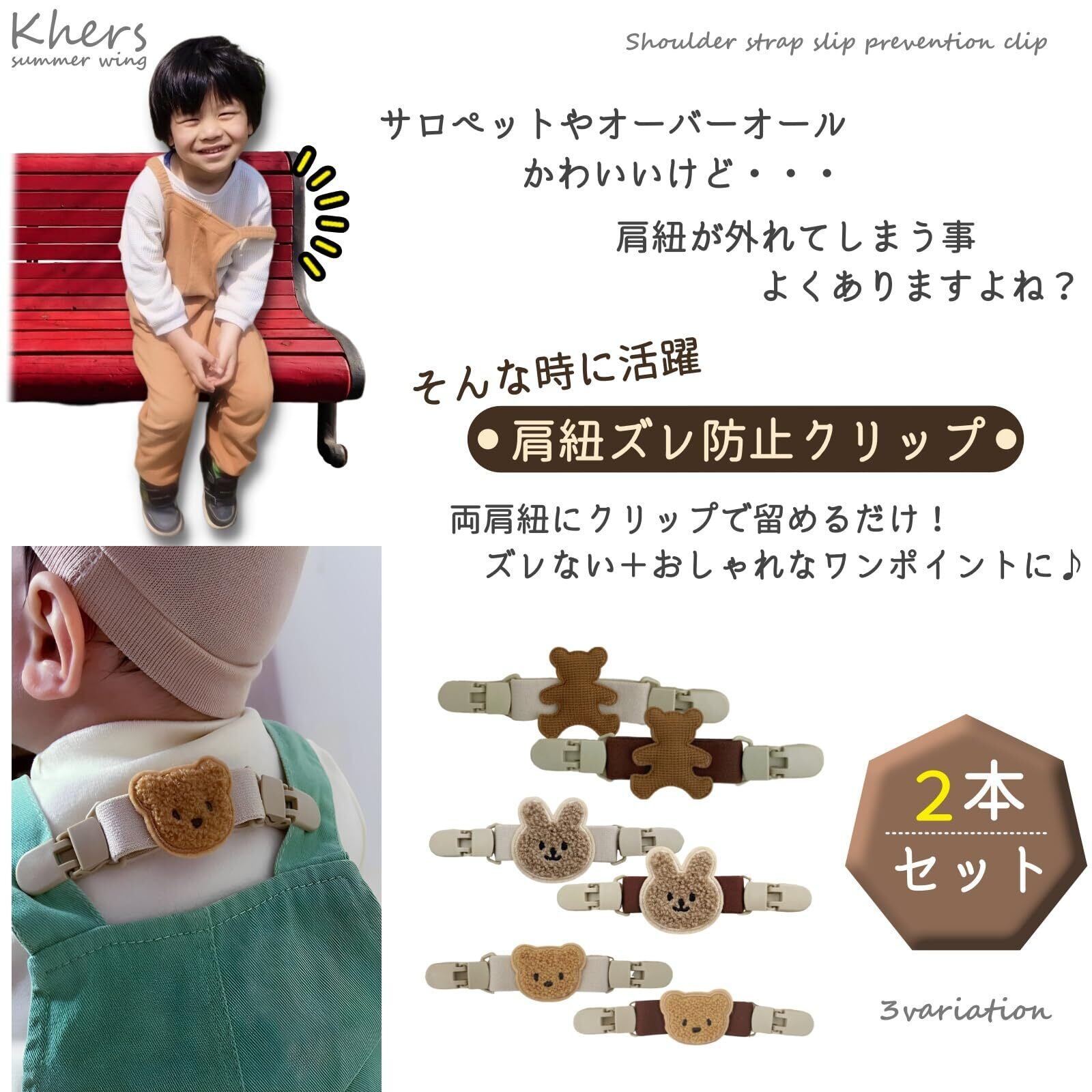 Khers 肩紐ずれ防止クリップ 肩紐ずり落ち防止クリップ 子供 2本組 (クマ)