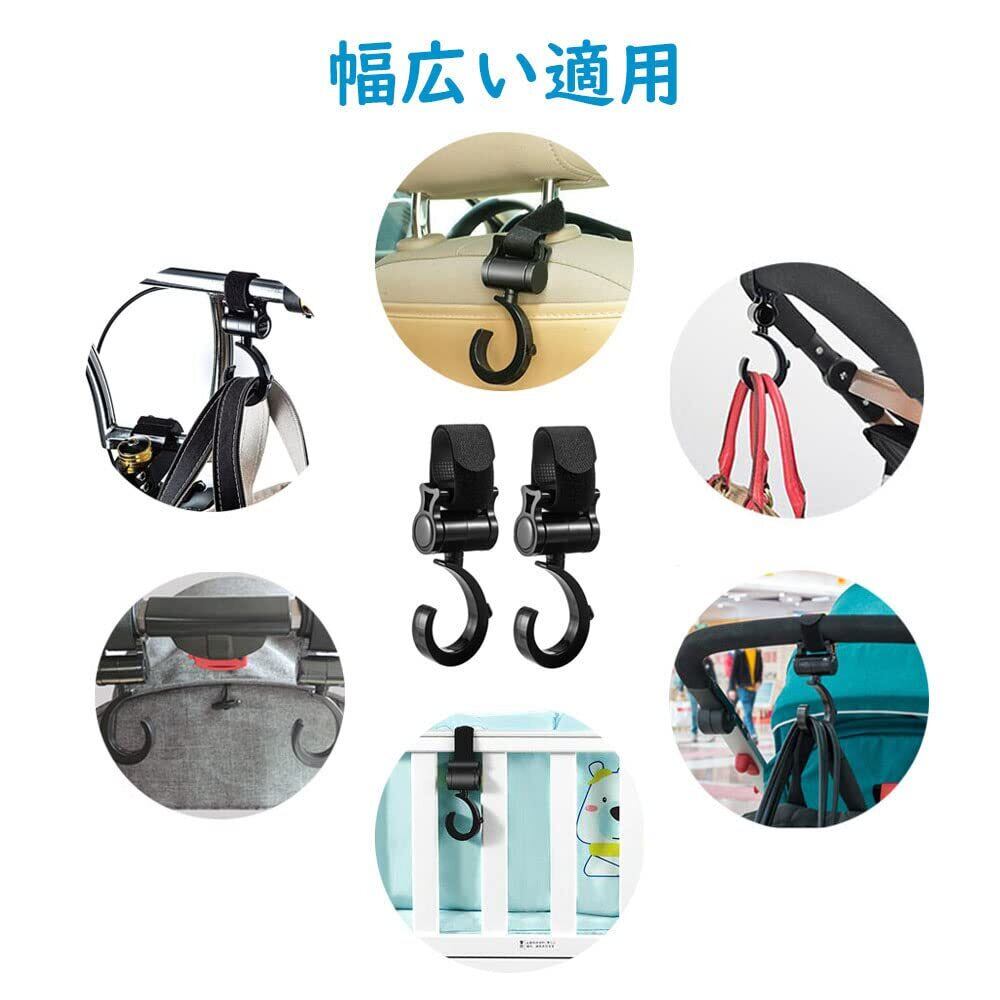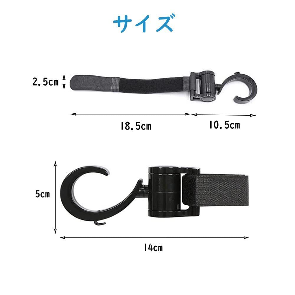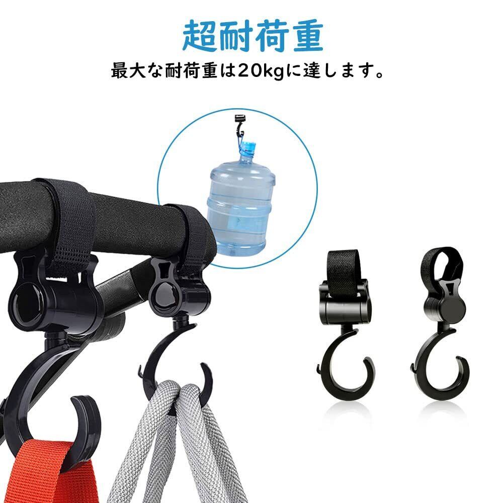 【新着商品】サムコス ベビーカーフック マジックテープ式 マルチフック 滑り止め 360度回転式 耐荷重20kg 荷物フック 自転車フック 万能フック… (2個セット)