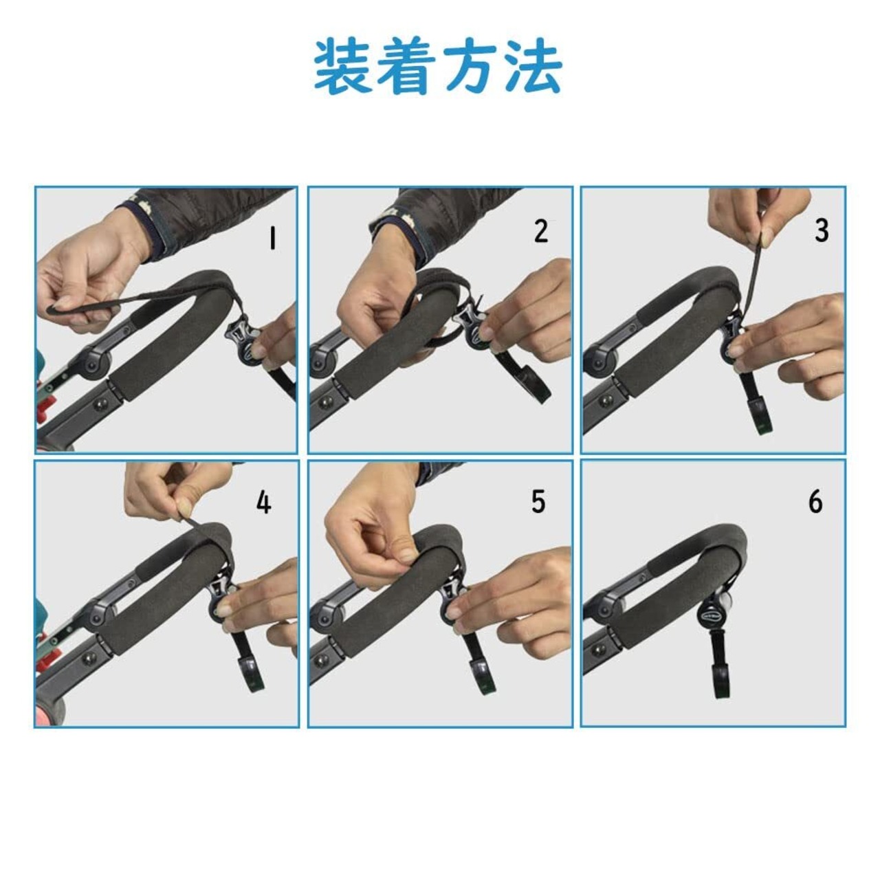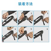 【装着方法】1.パイプにベルトを回し、本体のベルト通しにまっすぐ通します。 2.ベルトを引っ張り、巻き付けて完成です。マジックテープはしっかりとした粘着力があり、繰り返し使用可能です。