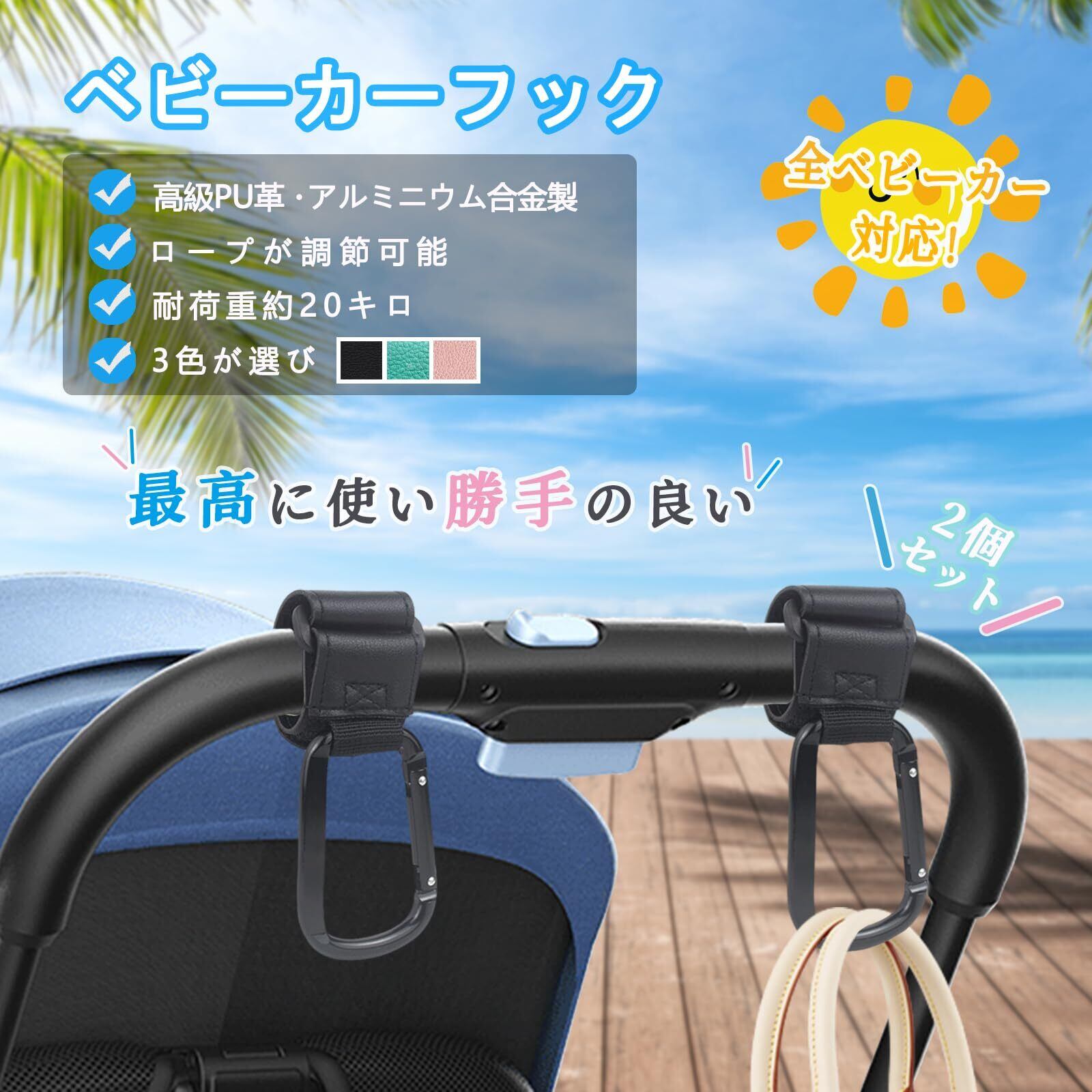 【特価セール】【現役保育士推薦】 LolyyDens ベビーカーフック バギーフック 大きいカラビナ ベビーカー 荷物フック 高級PU革 縫製・高級アルミ合金素材 頑丈 耐荷重約20kg 滑り止め 荷物が落ちない マジックテープ式 調整可能多機能フック おしゃれ ベビーカー・自転車・バイクに最適『 2個セット-ブラック』