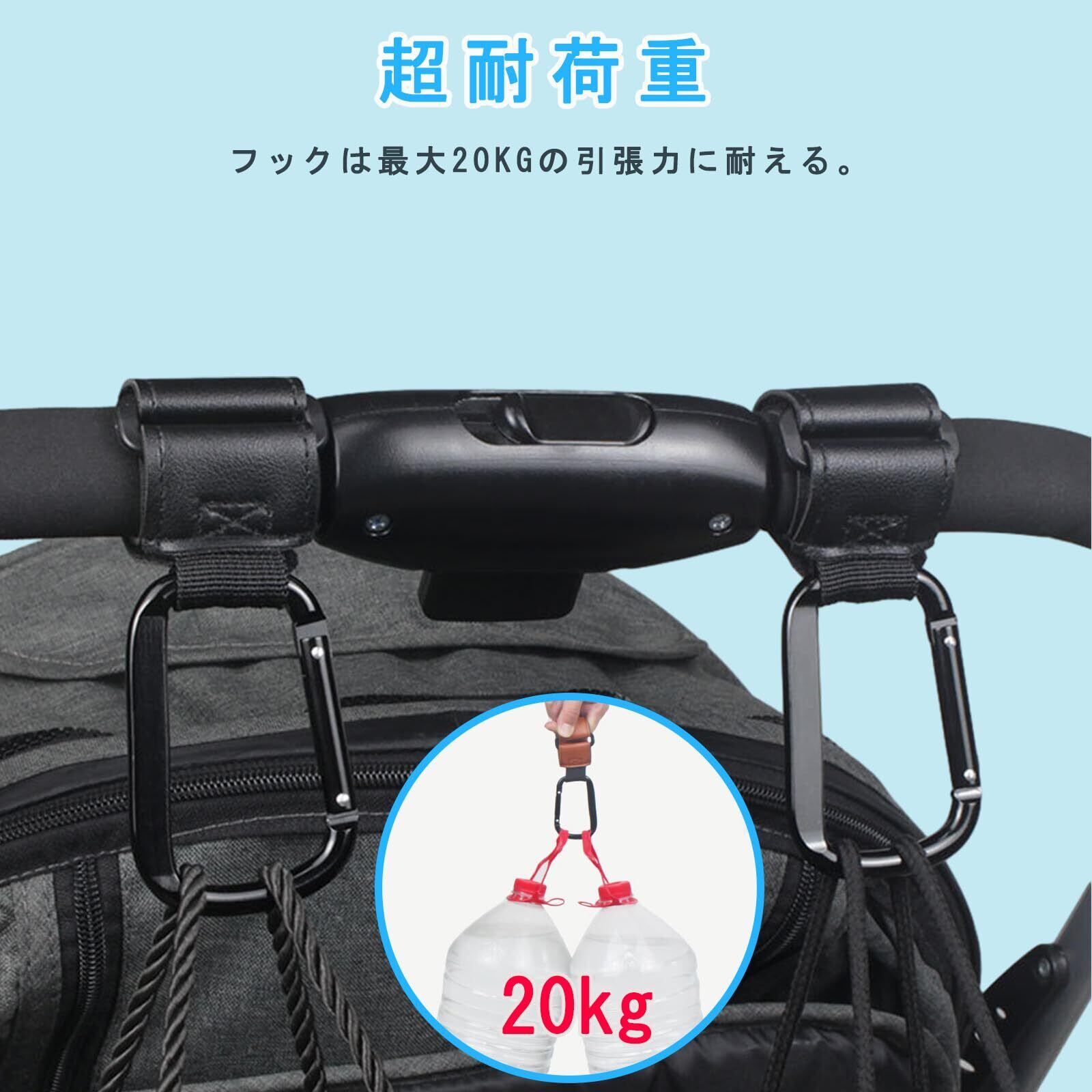 【大フック・超耐荷重】3.5cmの大きなフックデザインで、持ち手の大きなマミーバッグもベビーカーフックに掛けやすい。最大な耐荷重:20kg、外出時、日常の必須品は楽に掛けられます。