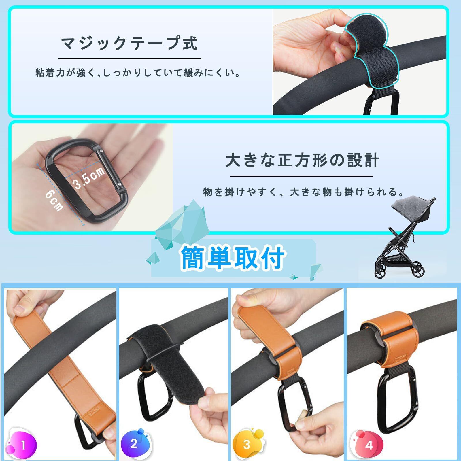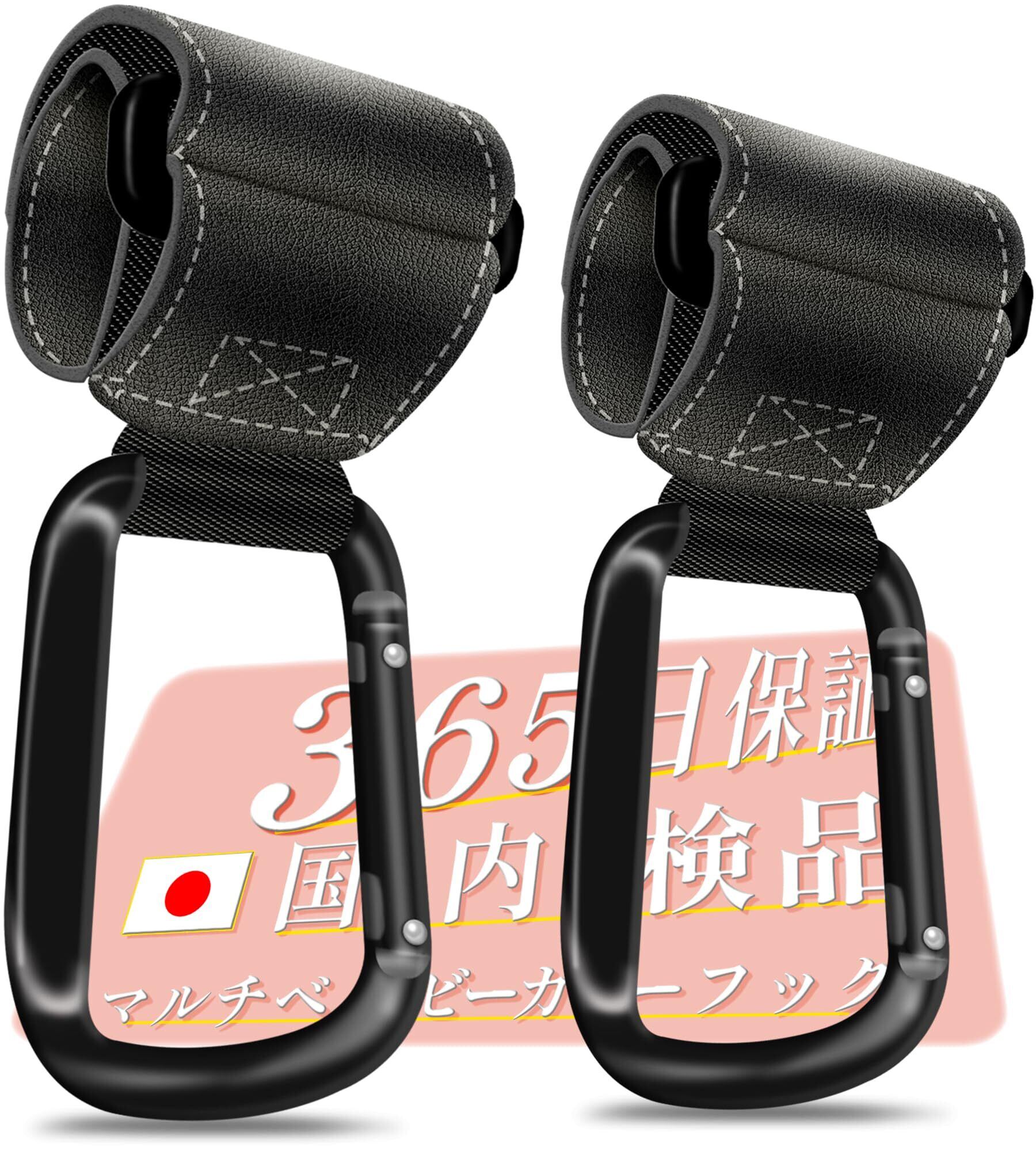 【現役保育士推薦】 LolyyDens ベビーカーフック バギーフック 大きいカラビナ ベビーカー 荷物フック 高級PU革 縫製・高級アルミ合金素材 頑丈 耐荷重約20kg 滑り止め 荷物が落ちない マジックテープ式 調整可能多機能フック おしゃれ ベビーカー・自転車・バイクに最適『 2個セット-ブラック』