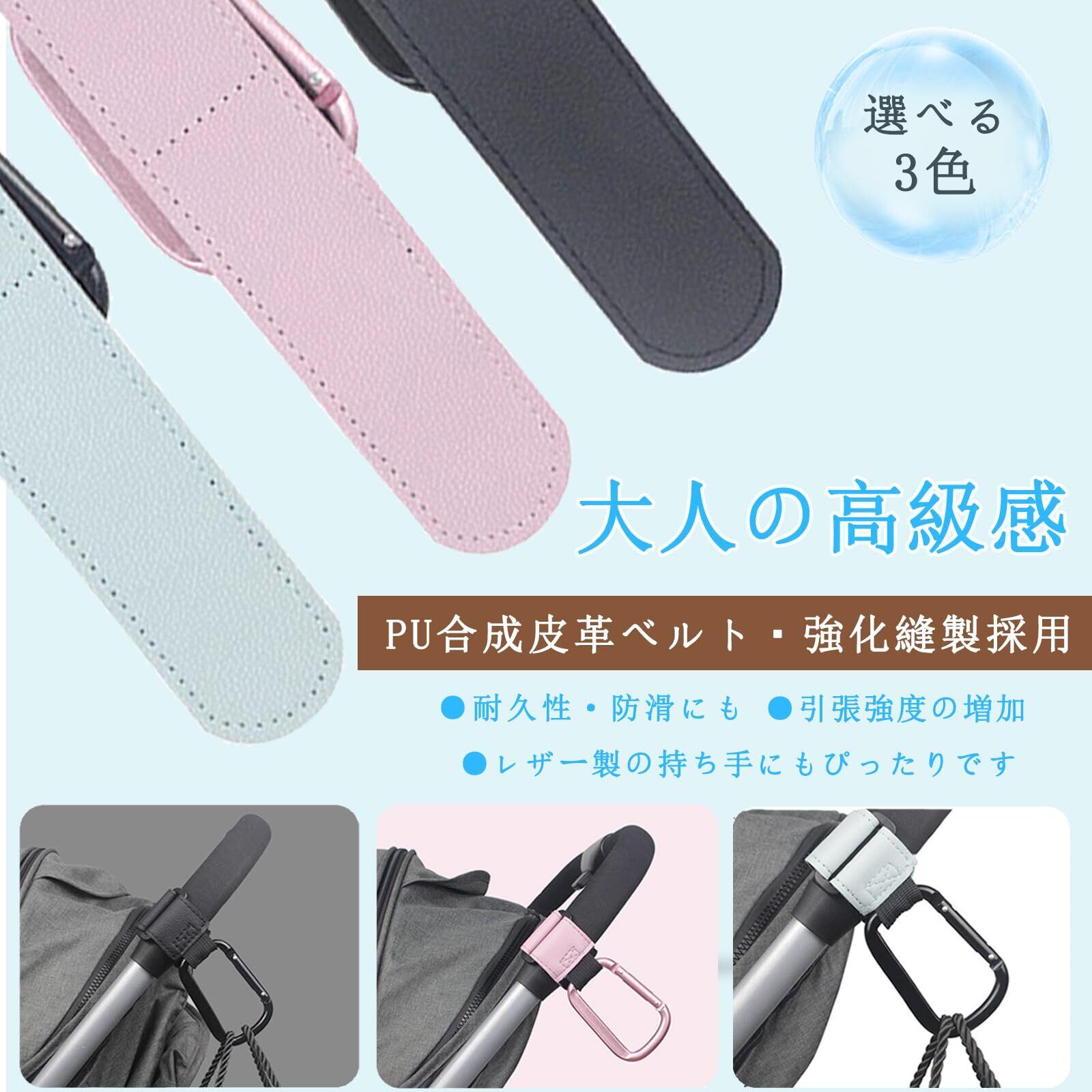 【高耐久素材】ベビーカーフック頑丈は高品質のPUレザーとアルミニウム合金製、革の光沢感と高級感を持ちます、滑り止め効果があり。アルミニウム製フック、丈夫で耐久性があります。