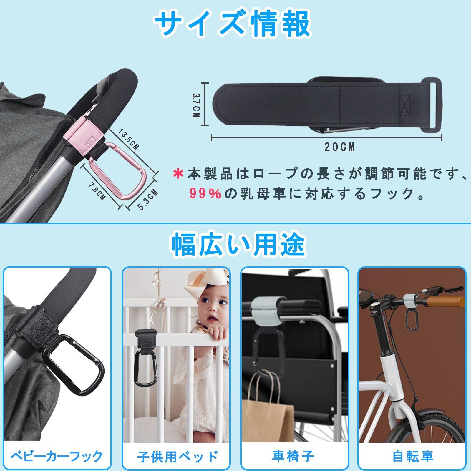 【全ベビーカー対応!・簡単な取り付け】調節可能な滑り止めストラップは、すべてのベビーカーに対応。様々なものをしっかりと掛けられ、乳母車、自転車のハンドル、キッチン周り、パイプヘッド、荷物、ベビーカーなどに適しています。バギーフックはマジックテープでハンドルと取り付け部に簡単に固定できる、若いママやお年寄りでも簡単に取り付けられる。マジックテープはPVC素材でできており、防水性、耐候性に優れ、屋外での長期間の使用に耐える。