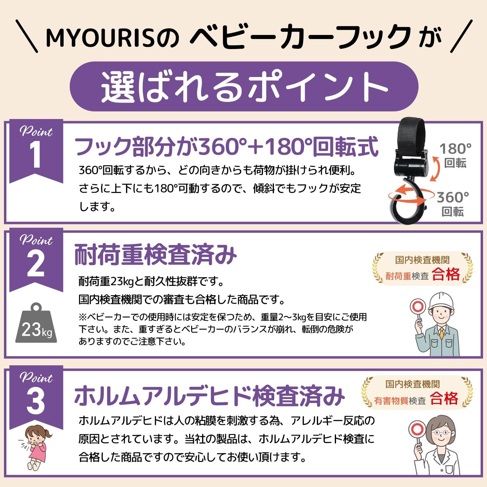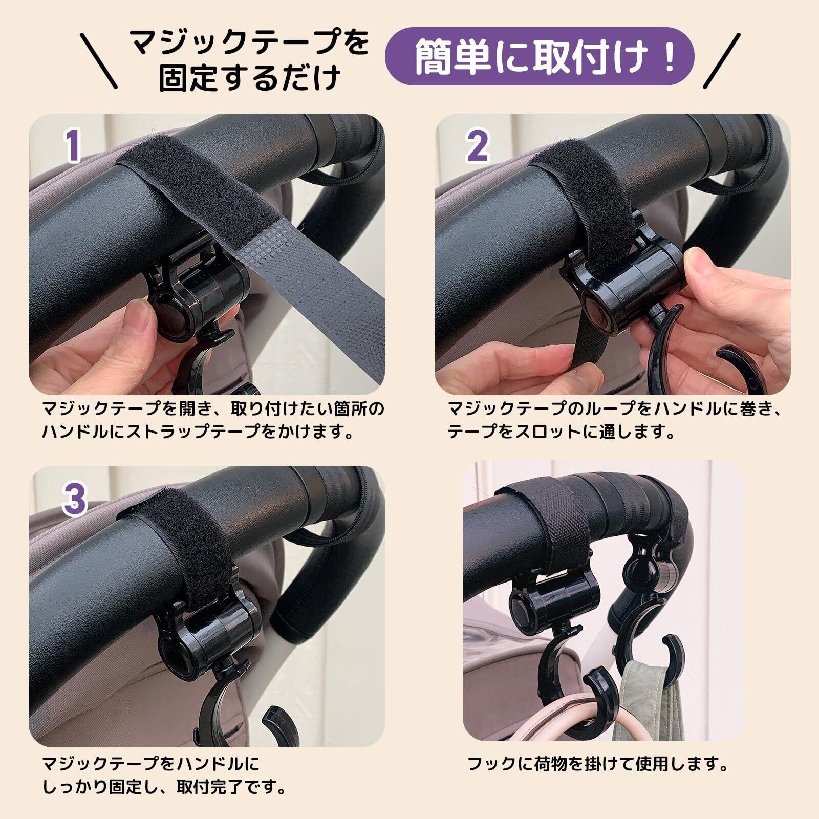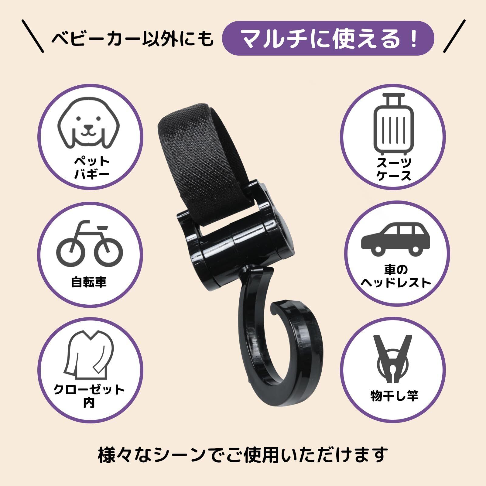 【在庫処分】ベビーカー フック 【国内検査合格】 360°×180°反復 簡単取付 安定感 大きめ 荷物フック マルチフック 耐久耐水素材 2個入り