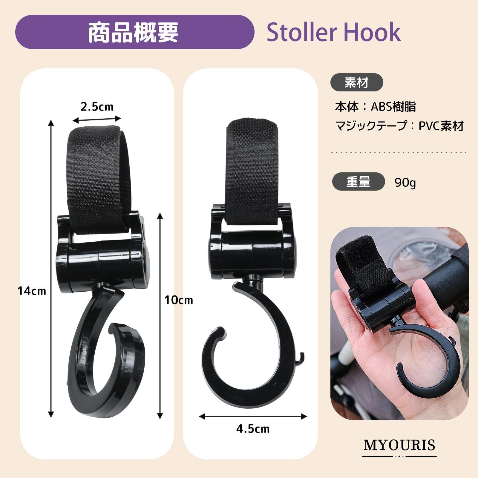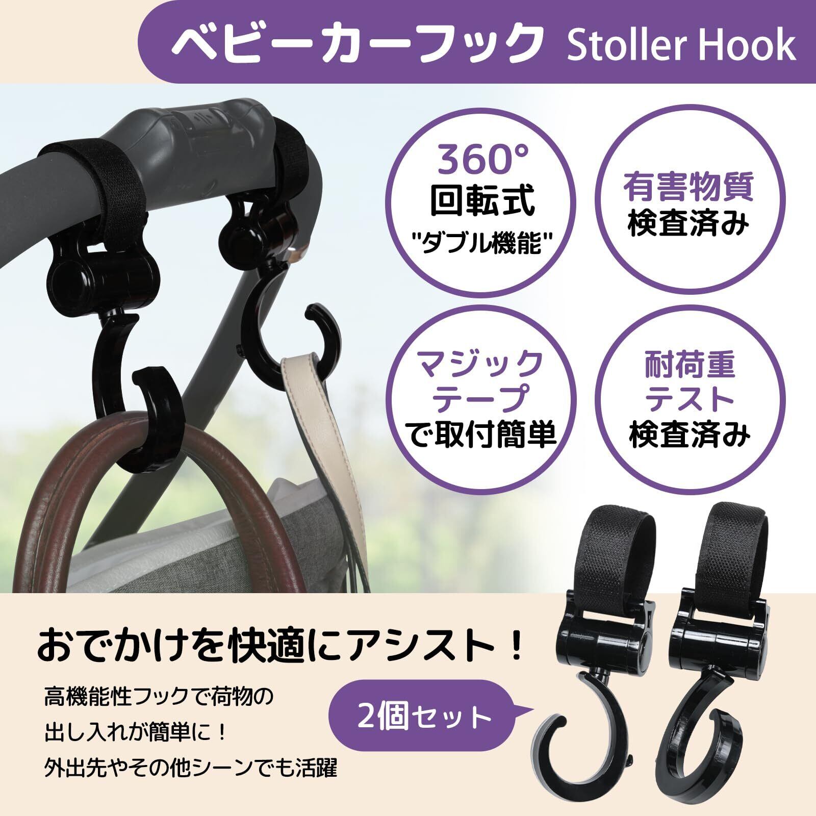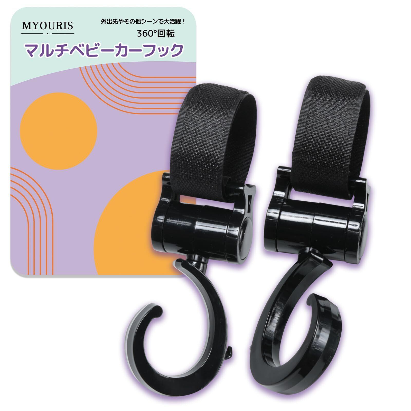ベビーカー フック 【国内検査合格】 360°×180°反復 簡単取付 安定感 大きめ 荷物フック マルチフック 耐久耐水素材 2個入り