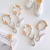 Lulu & Fleur(ルルフルー)ナチュラルカラーと木製のお星様またはくまさんが可愛らしいシューズクリップです。おしゃれで便利にお子様のお靴を持ち運びしていただけます。【サイズ】長さ:ループの状態約19cm、伸ばした状態約31cm 厚さ:約2cm、幅:約5〜6cm、重さ:約38g【カラーバリエーション】 ホワイト×星 ホワイト×くま グレー×星 グレー×くま