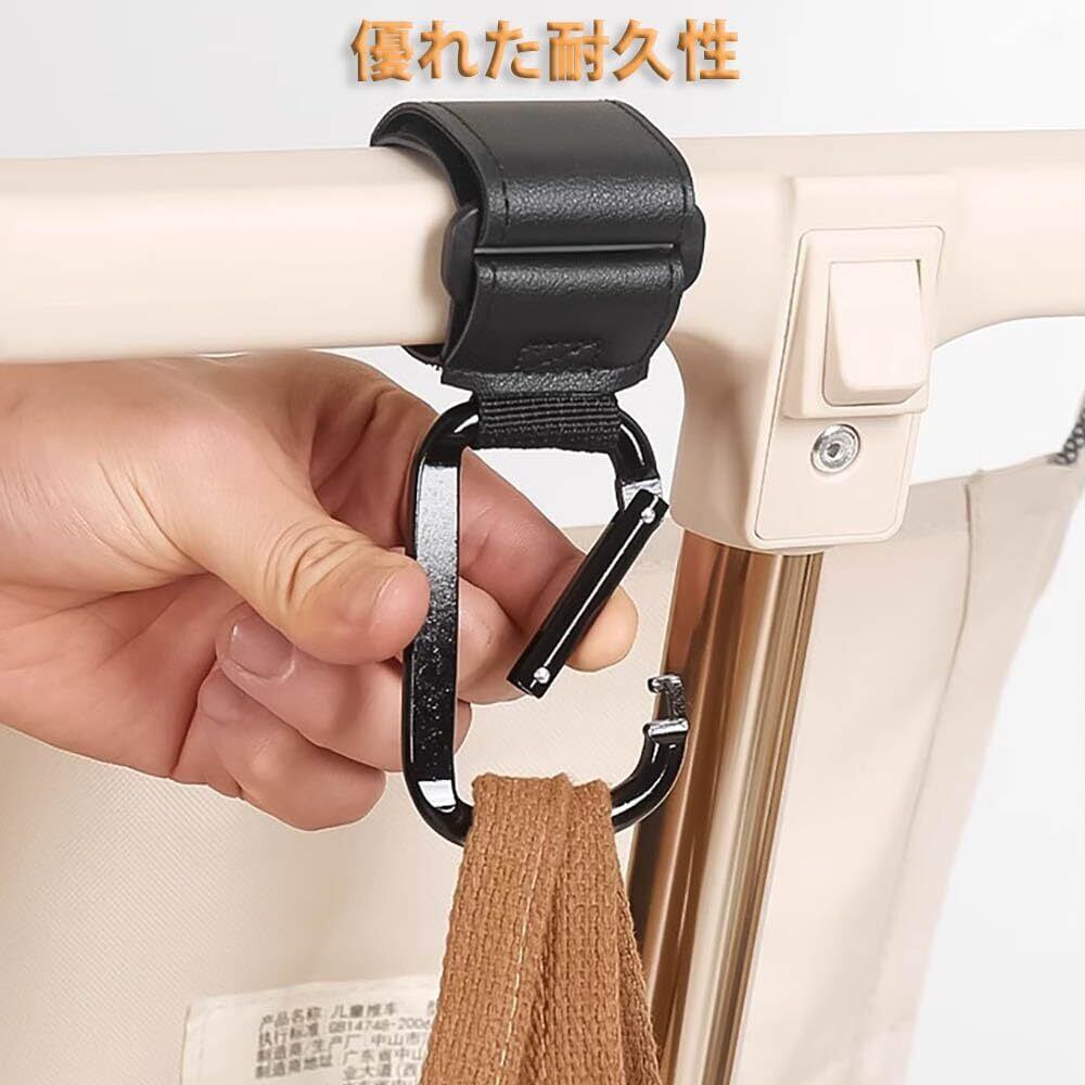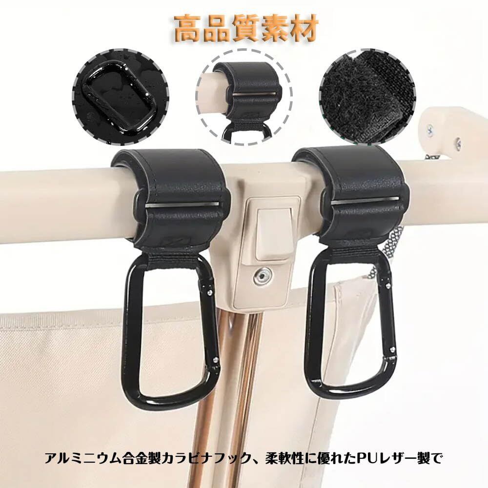 【特価セール】CHANJIF ベビーカー フック 2個 カラビナ バギーフック 合皮 PUレザー製 2個コンビ ベビーカー荷物掛けフック 調整可能 ベビーカー 自転車 バイク用 ブラック
