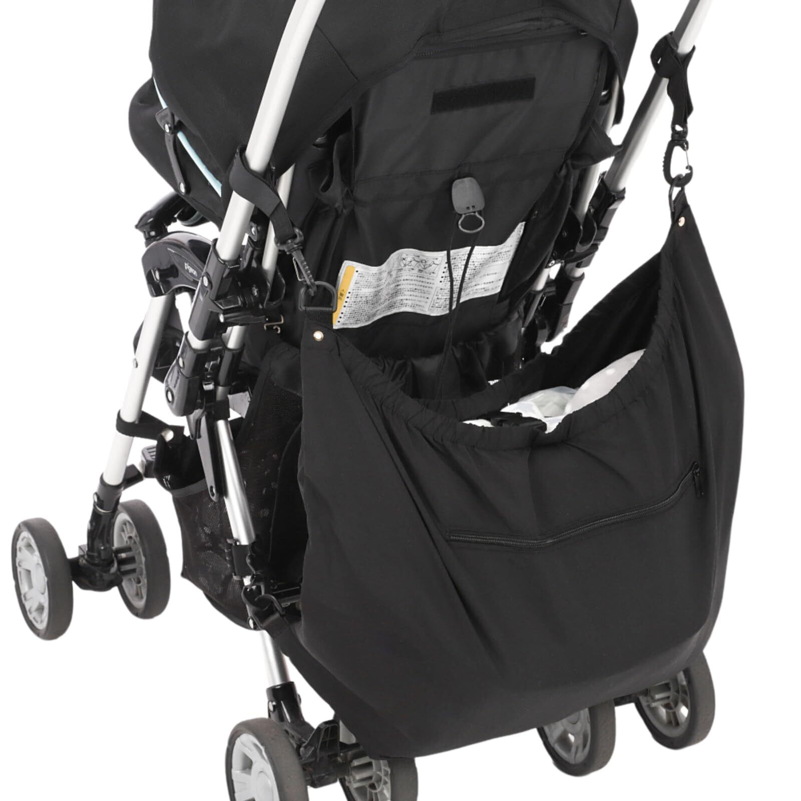 CocoPon ココポン ベビーカー アンダーバッグ 【便利なチャック付き収納ポケット&トートバッグに変身】 倒れない トートバッグ 収納 大容量 24L (ブラック)