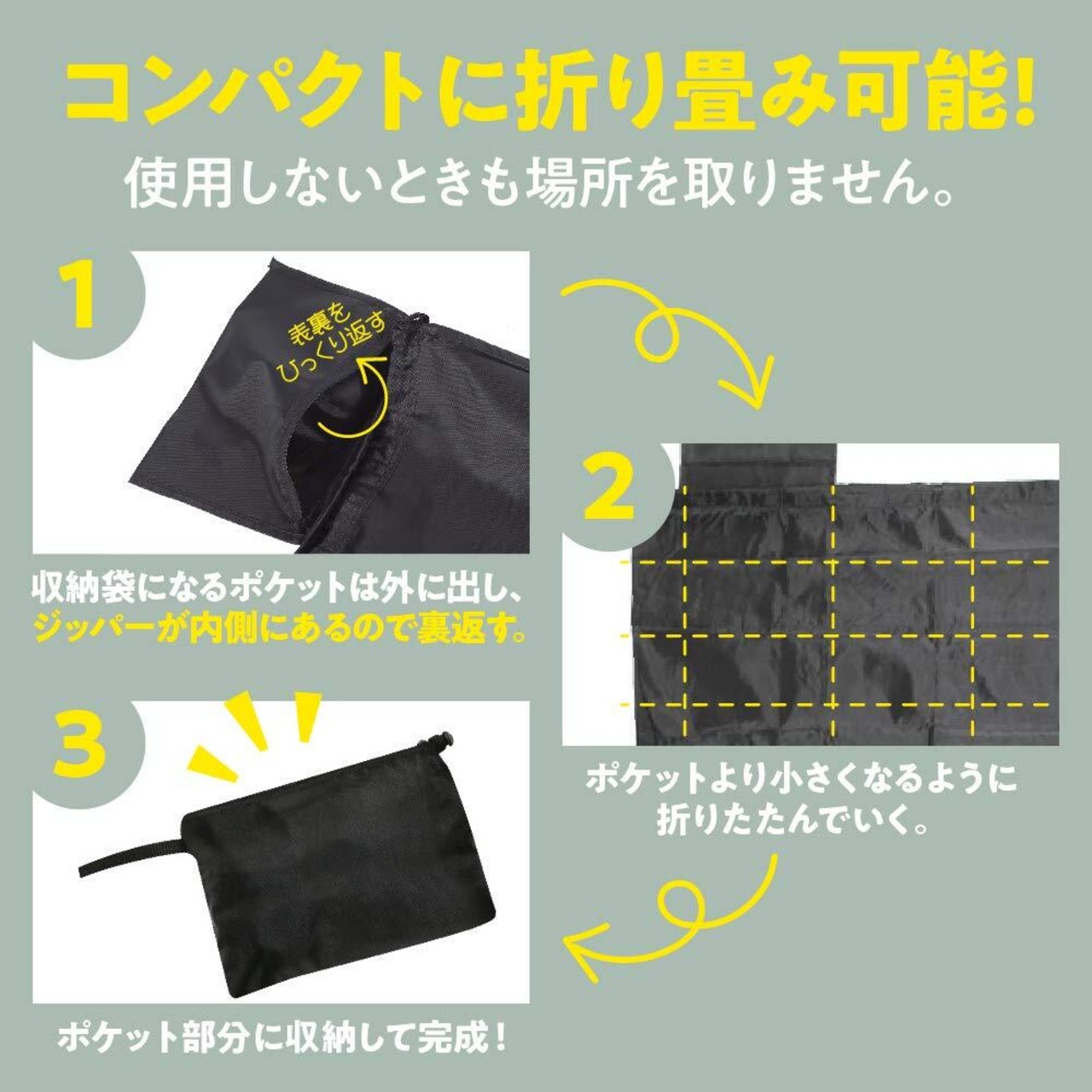 【 折り畳み式 】コンパクトに折りたためますので、使用しないときも場所を取りません。収納袋が付属しますので、持ち運びしやすいです。
