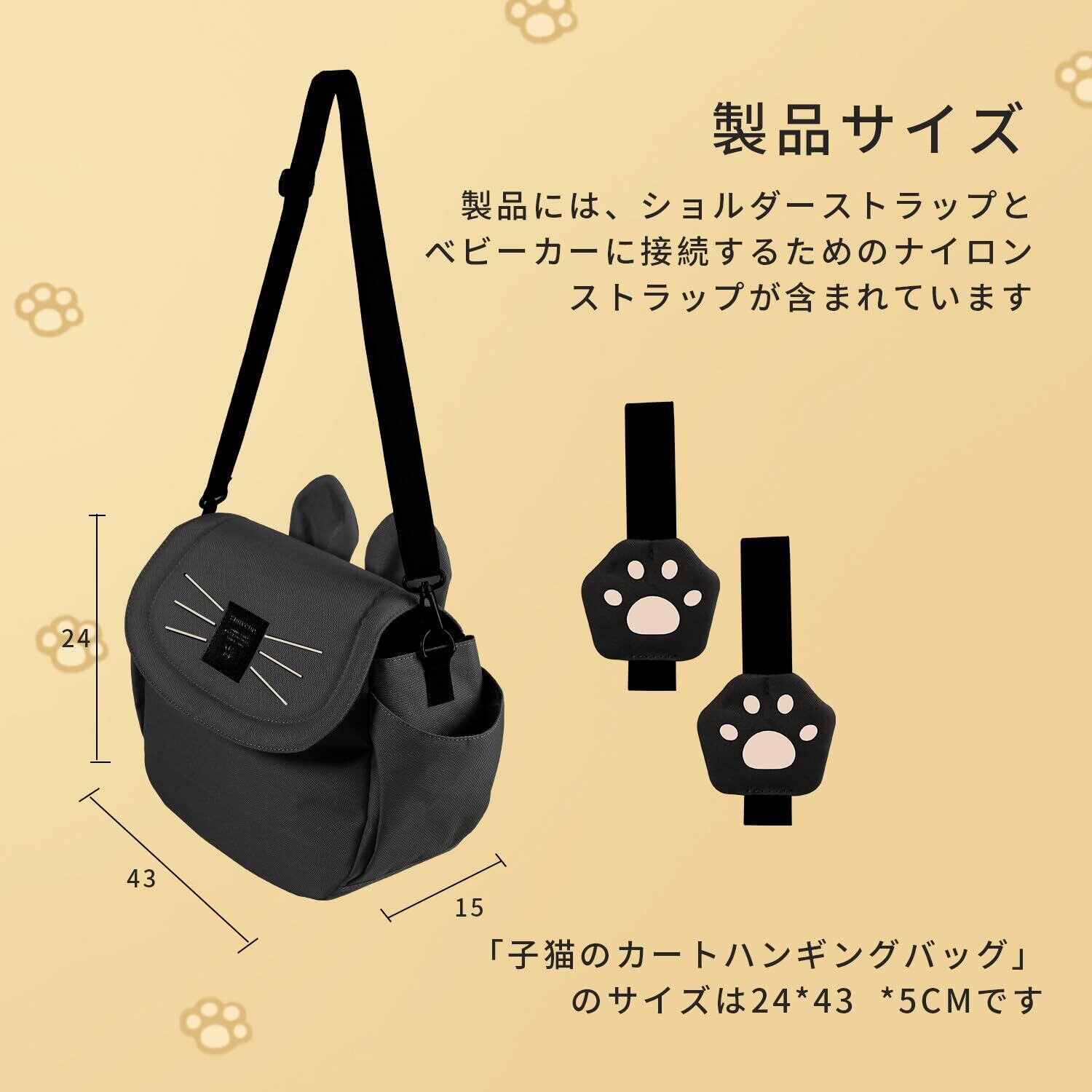 調整可能なショルダーストラップ:2つの調整可能なショルダーストラップが付いており、一般的なベビーカーに適しており、車椅子のハンドルに簡単に取り付けることができます。ショルダーストラップを調整して、ポータブルなショルダーバッグとしても使用できます。日常生活で幅広く使用され、非常に実用的です。