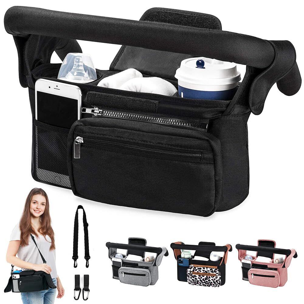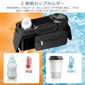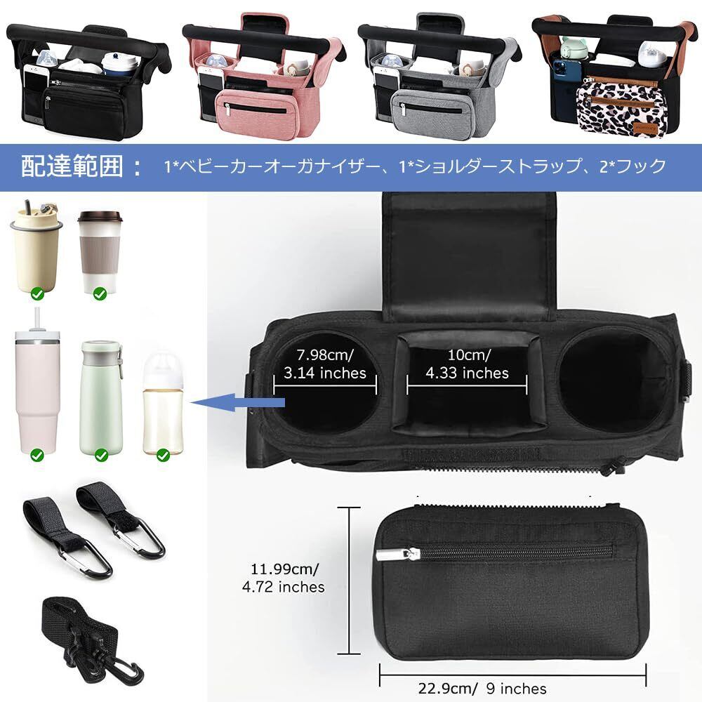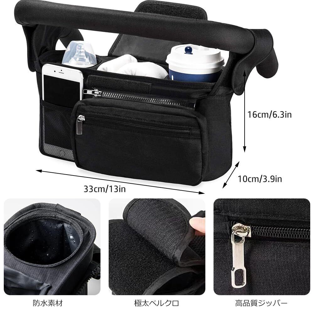 【用途いっぱい】ほとんどのベビーカーに対応できる便利なストローラーオーガナイザー!ベビーカーに取り付けられる以外にも、取り付け簡単で付属のショルダーベルトは肩掛けスタイルでもお使いいただけます。車椅子やベビーベッドなどに掛けますし、手持ちできます、年齢と場所を問わず、通年お使いいただけます、子育て中のママを助ける工夫が満載!