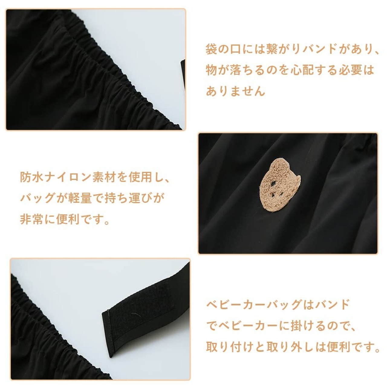 サムコス ベビーカー アンダーバ ッグ 収納バ ッグ 大容量 転倒防止設計 哺乳瓶 おむつ収納に最適 マザーズバ ッグ トートバッグ兼用 防水加工 お出かけ便利(ブラック)