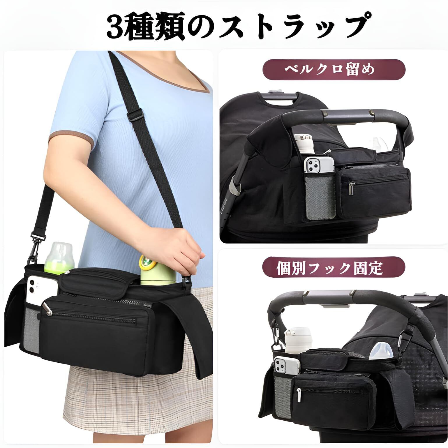 【2way仕様】ベビーカーバッグ 大容量 撥水 ドリンクホルダー2個&保冷機能付 ベビーカー収納バッグ おむつポーチ哺乳瓶スマートフォン収納 手持ち肩掛け2way ショルダーバッグ ベビーベッド/ベビーカー掛け 多機能 ママの育児支援バッグ 外出便利アイテム