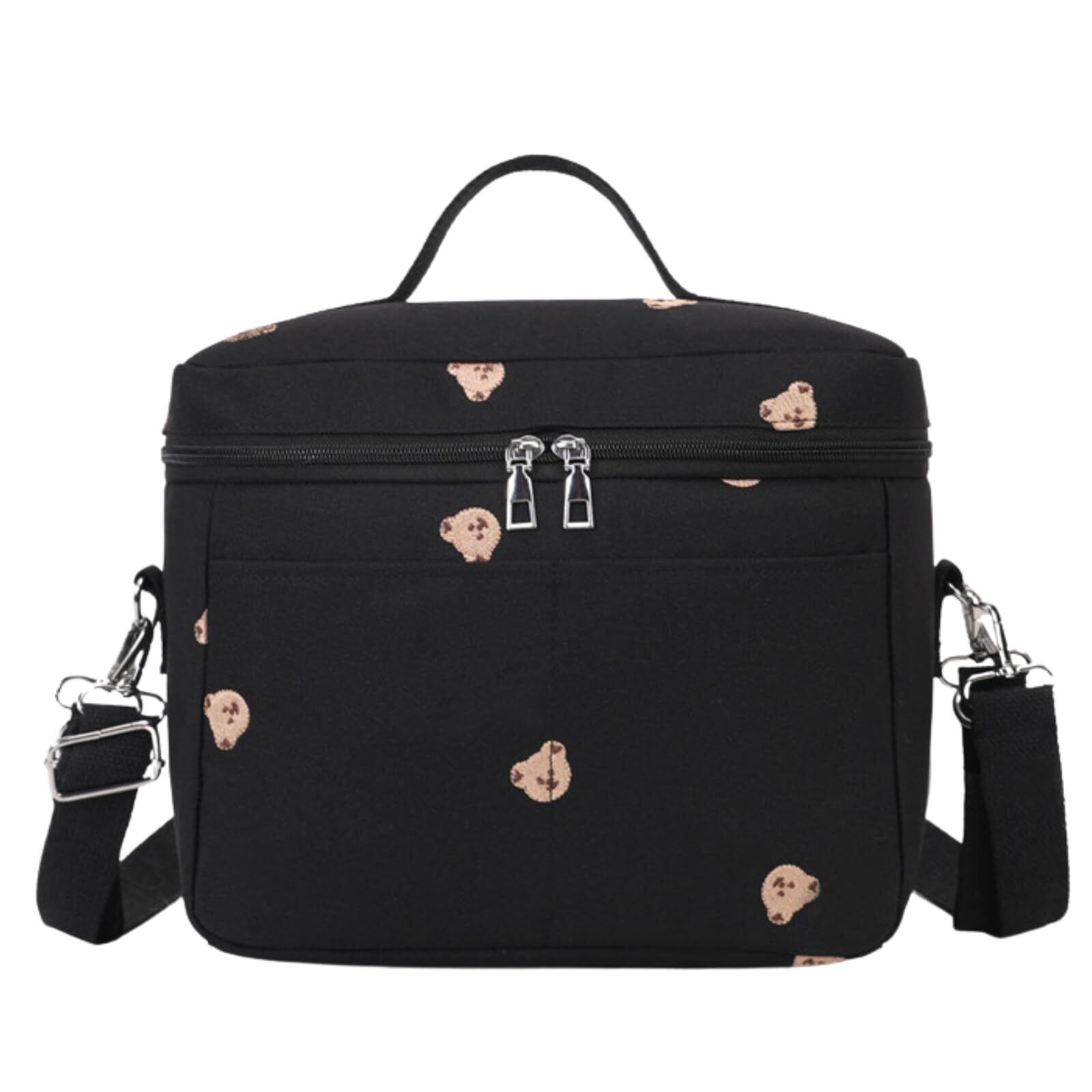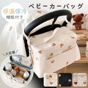 【保温・保冷機能付き!くま柄ベビーカーバッグ】 お出かけがもっと楽しく、もっと快適に!可愛らしいくまの刺繍が目を惹くベビーカーバッグが登場しました。 機能性とデザイン性を両立した、ママパパの強い味方です。