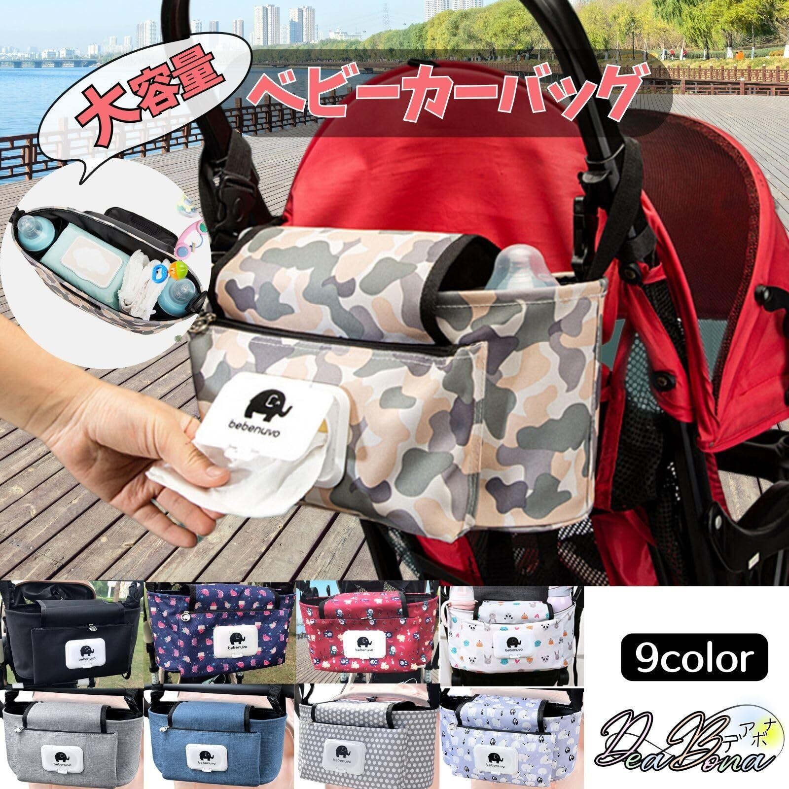 お出かけの際、たくさん大容量収納できる便利なベビーカーバッグです。