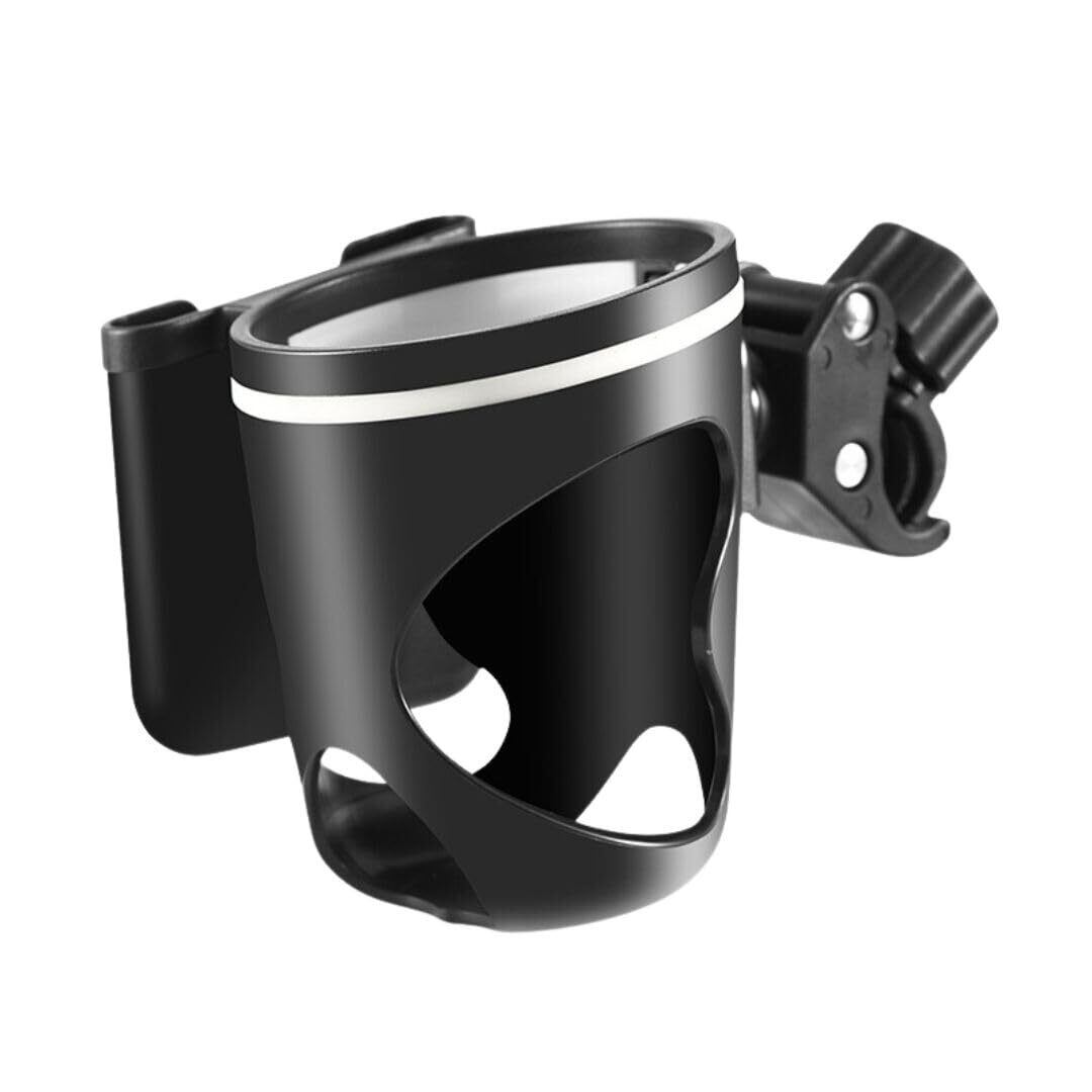【在庫セール】ベビーカー ドリンクホルダー 自転車 カップホルダー 360度回転 滑り止め 取り付け簡単 哺乳瓶 ペットボトル対応 多機能 ホルダー (スマホ入れ有り)