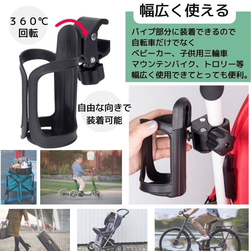 East Leaf ドリンクホルダー 自転車 ハンドル ボトルホルダー ペットボトル 工具不要 2個 セット 黒 ベビーカーにも