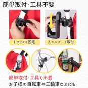 【かんたん取付・工具不要】取付はハンドルなどに固定部分を挟み込み、あとは固定ハンドルで締めるだけ。簡単取付・工具も不要。お子様の自転車や三輪車などにも手軽に取付OKです。