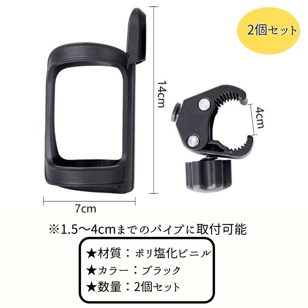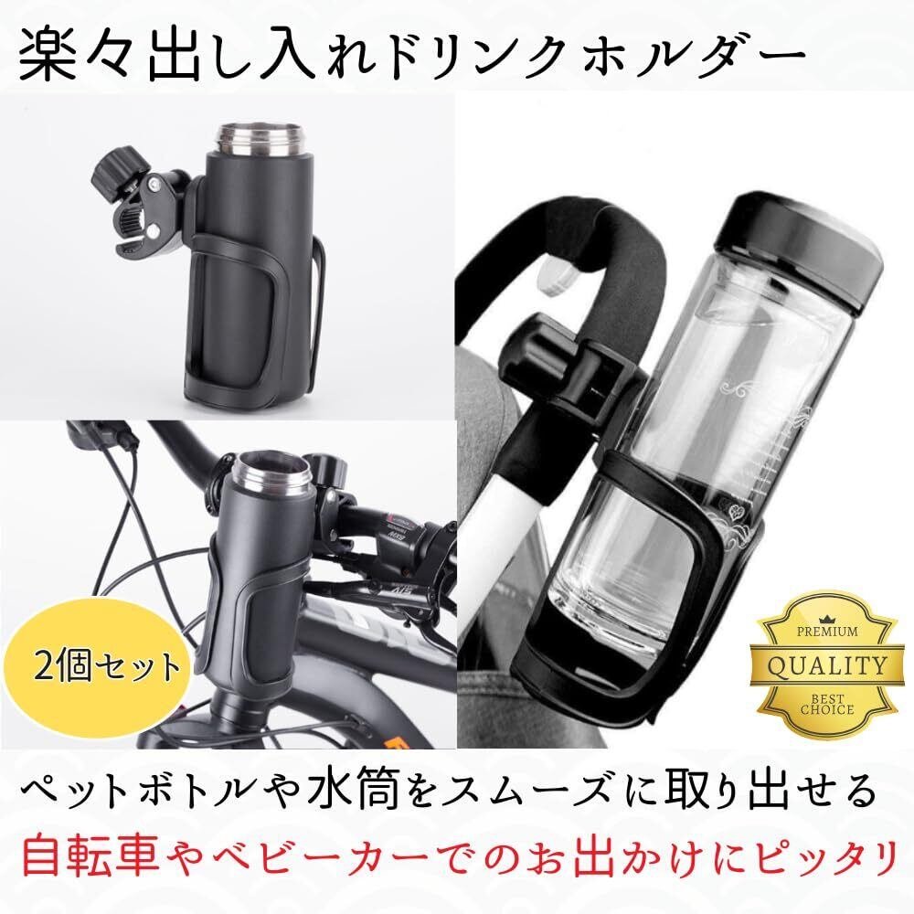 【人気商品】せんふう ドリンクホルダー 自転車 ベビーカー ペットボトル 缶 哺乳瓶 360度回転 簡単取付 ブラック 2個セット