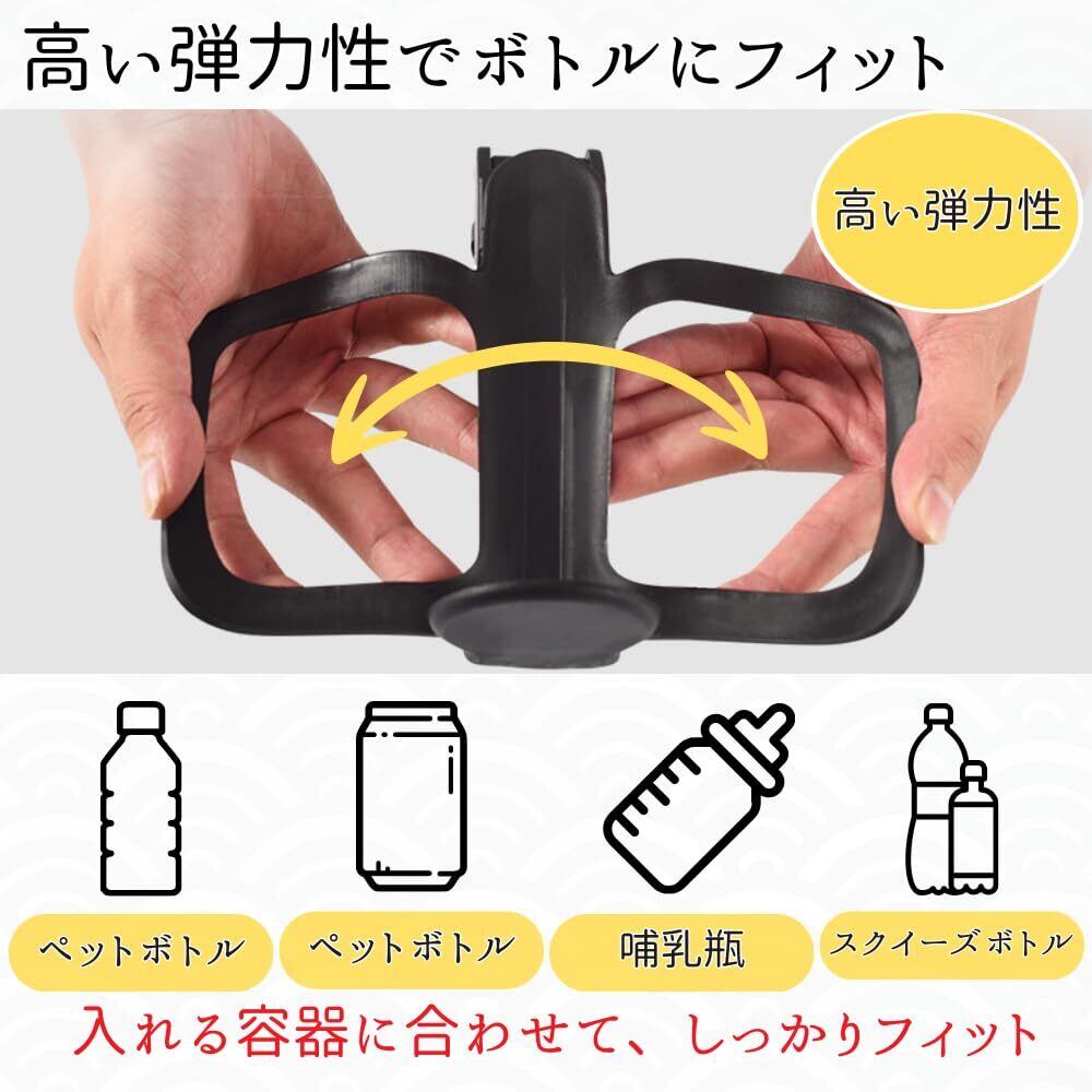 【高い弾力性でボトルにフィット】高い弾力性を持つドリンクホルダー。入れる容器に合わせて形が変わり、しっかりフィットして挟み込むスグレモノ。ペットボトルや缶はもちろん、お子様の哺乳瓶や水筒にも。スポーツ用のスクイズボトルにもオススメ。
