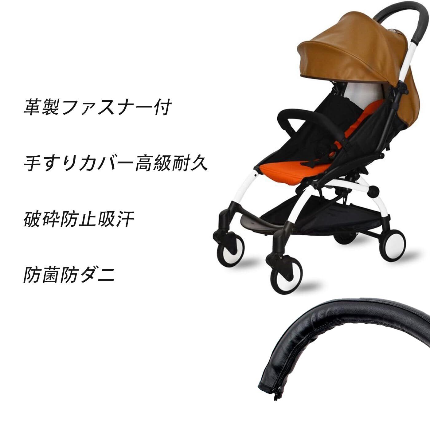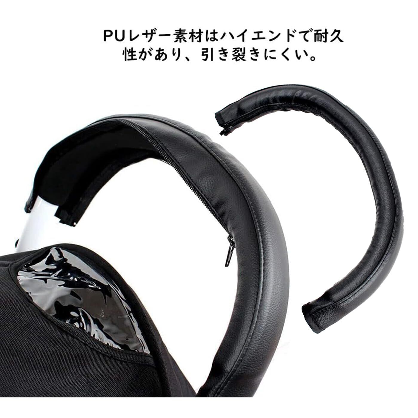 Mirhua ユニバーサルベビーカー用レザーハンドルカバー 調整可能・汚れ防止 柔らかいグリップ ブラック ベビーカー ハンドルカバー