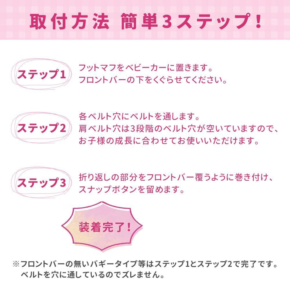 ステップ1 フットマフをベビーカーに置きます。フロントバーの下をくぐらせてください。