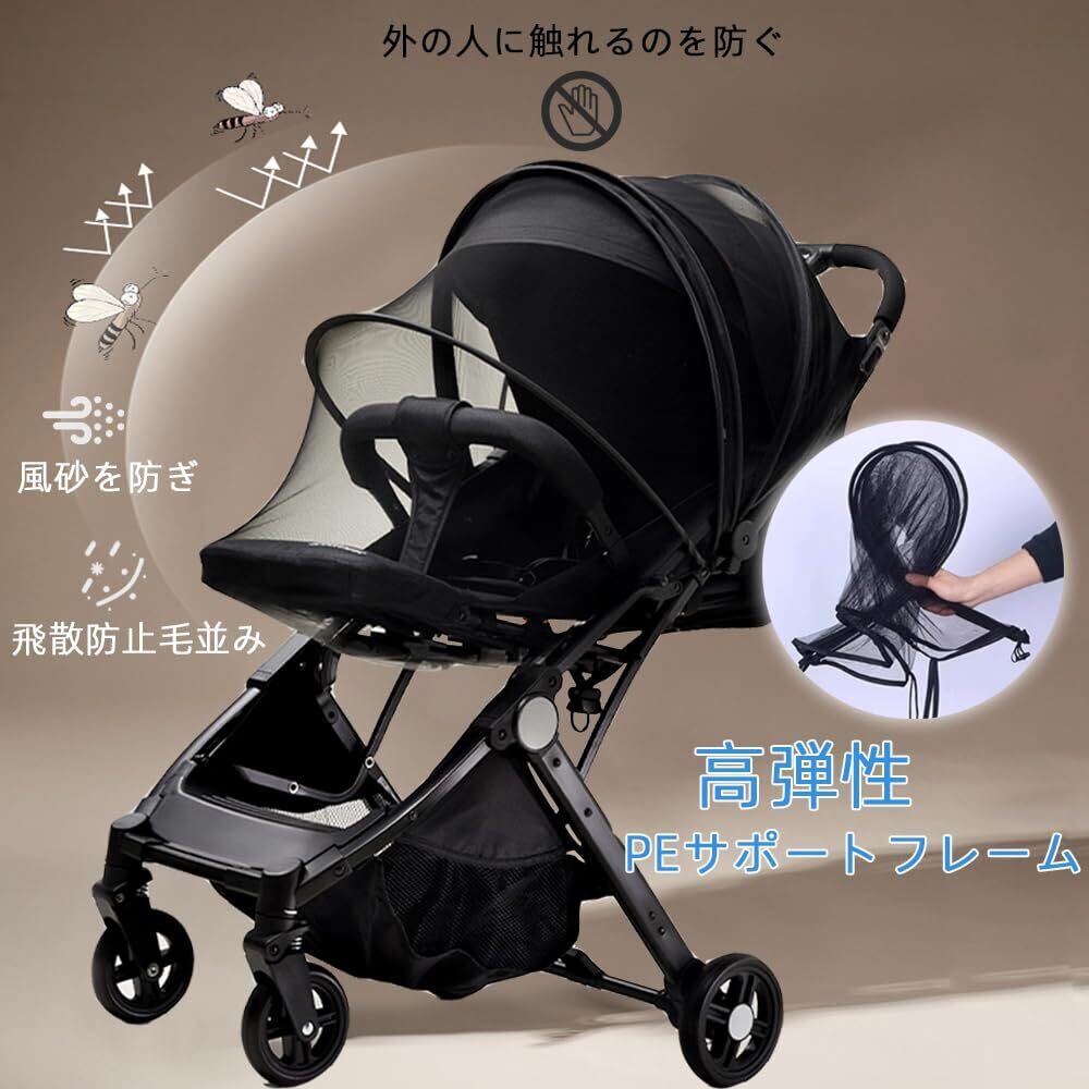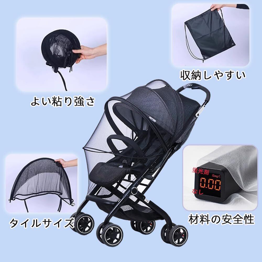 【特価商品】Renjzle ベビーカーカバー 蚊帳 虫除けネット UV カット 日よけ 通気性 折りたたみ式 簡単取り付け 収納便利 高密度メッシュ 通用型 開閉ファスナー付