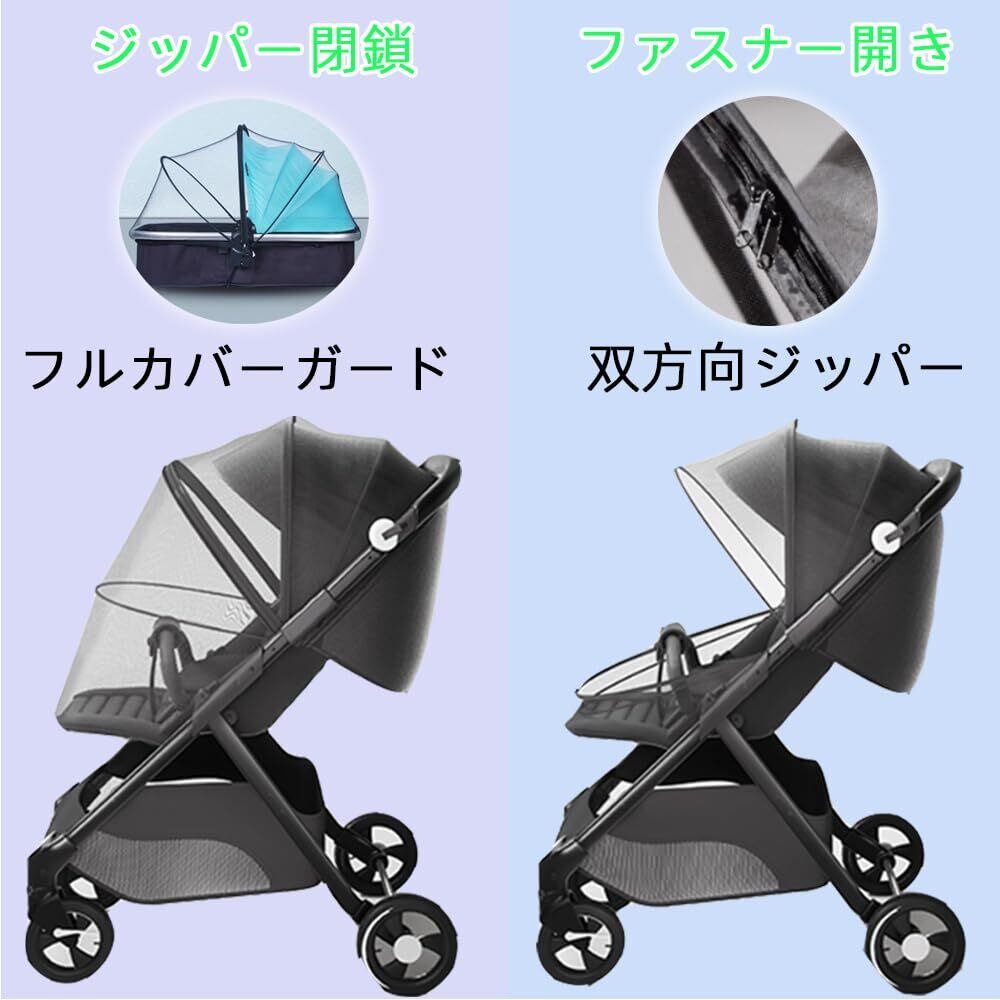 Renjzle ベビーカーカバー 蚊帳 虫除けネット UV カット 日よけ 通気性 折りたたみ式 簡単取り付け 収納便利 高密度メッシュ 通用型 開閉ファスナー付
