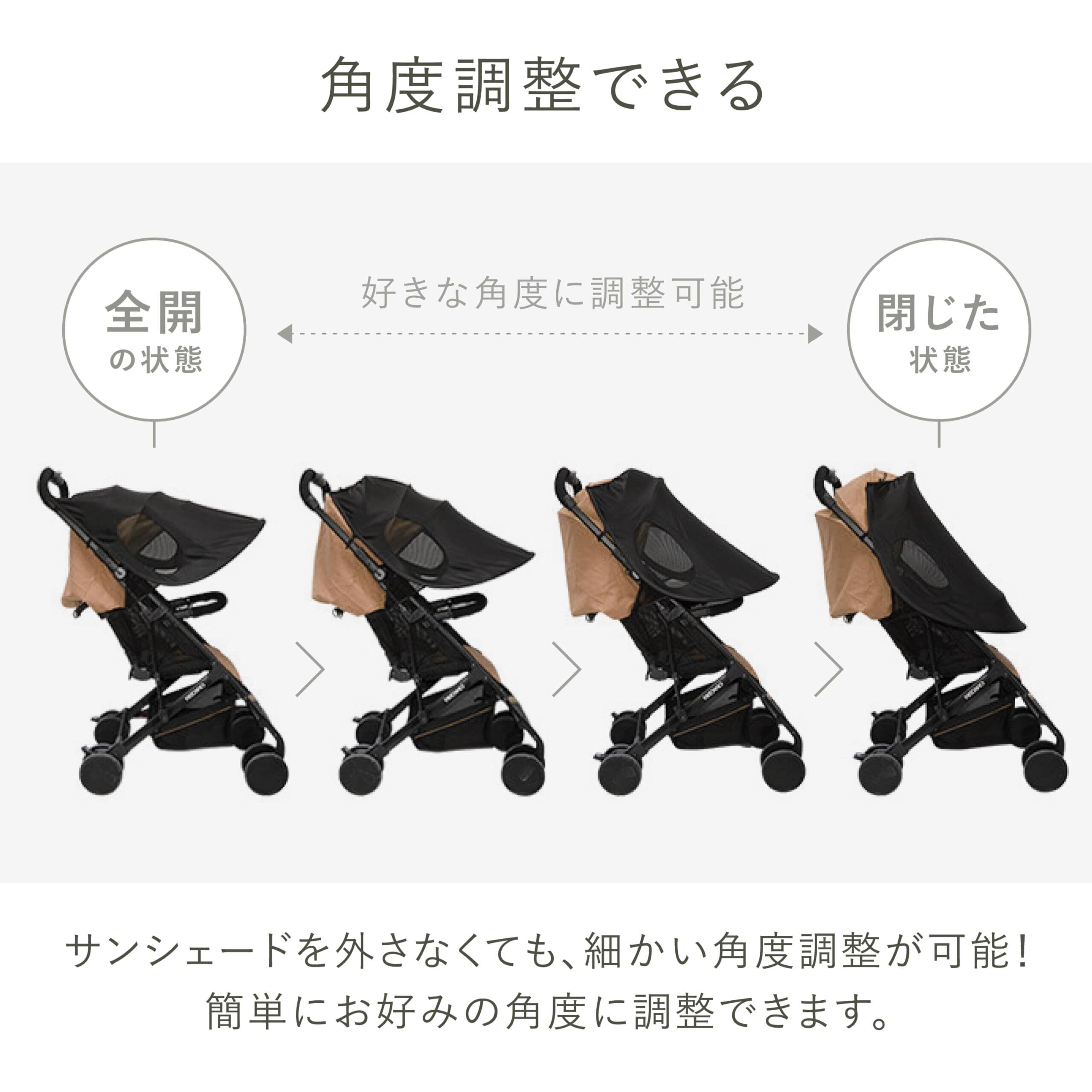 【突然の雨でも慌てなくてOK】サンシェードは防水加工された素材を採用。急な雨模様でも安心してお出かけできます。 【サイドメッシュ小窓】通気性の良いメッシュ素材の小窓をサイドに設けました。カーブした形状で風通しがよく、日差しからしっかりガード。