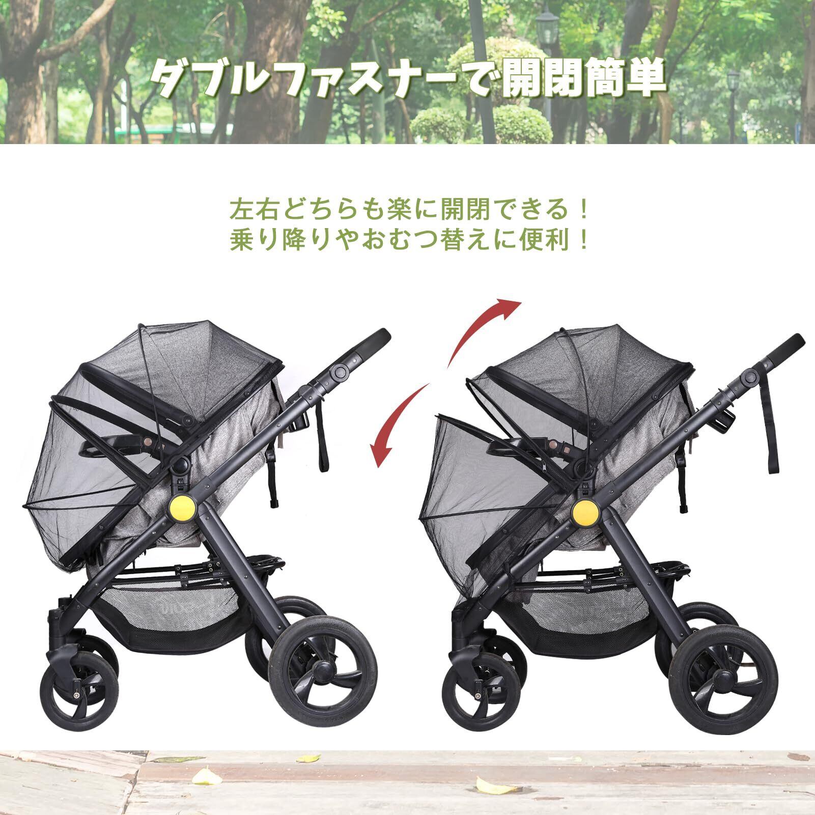 【使いやすい虫除け蚊帳】使い勝手良い機能がたくさん搭載されてるベビーカーカバで、暑さ対策と防虫対策でお出かけの際に快適に過ごすことができます。