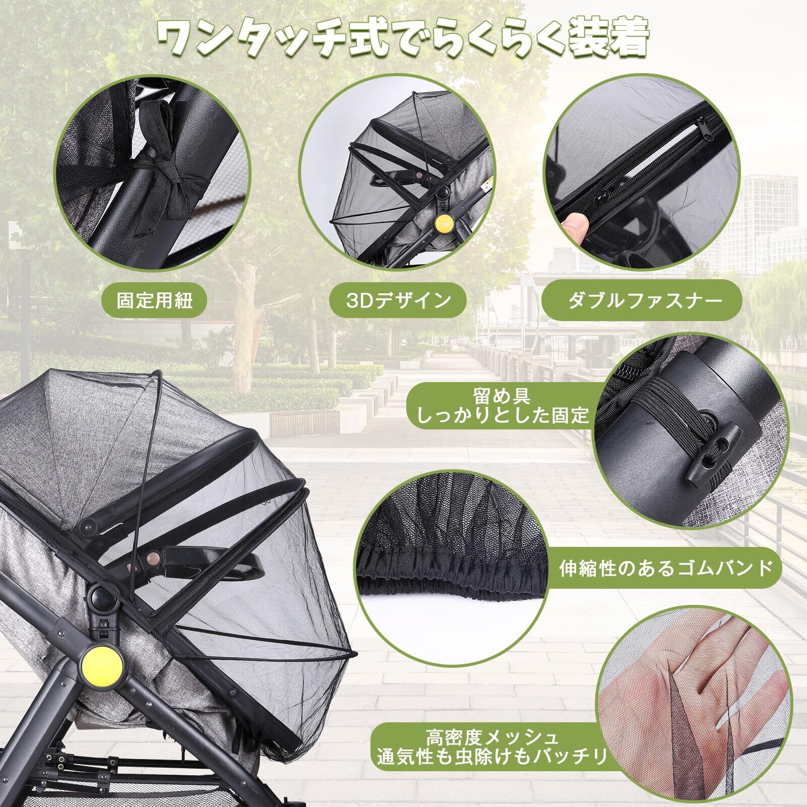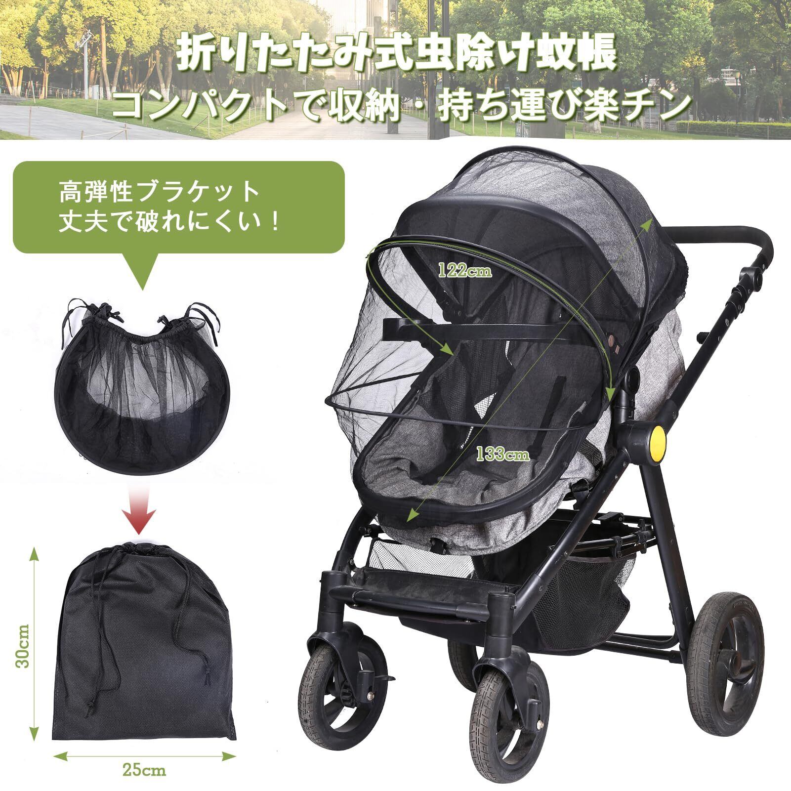 LIHAO ベビーカー 虫除け カバー 蚊帳 後付け a型 b型 通用 折り畳み式 日除け サンシェード ネット 軽量 コンパクト