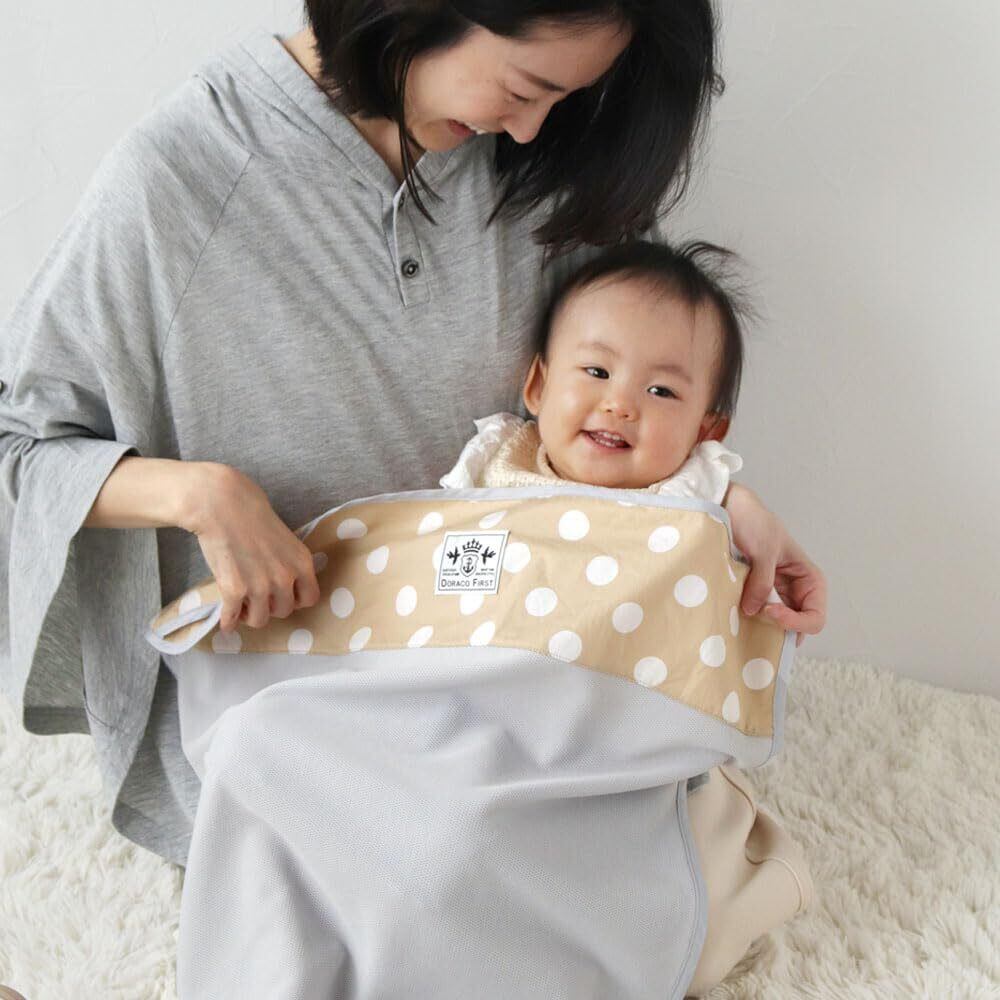 アイスブランケット UVカット ひんやり ベビーブランケット ベビーカー 日よけ DORACO FIRST ドラコファースト ブランド 日本製 65x67 (ミルクティドット)