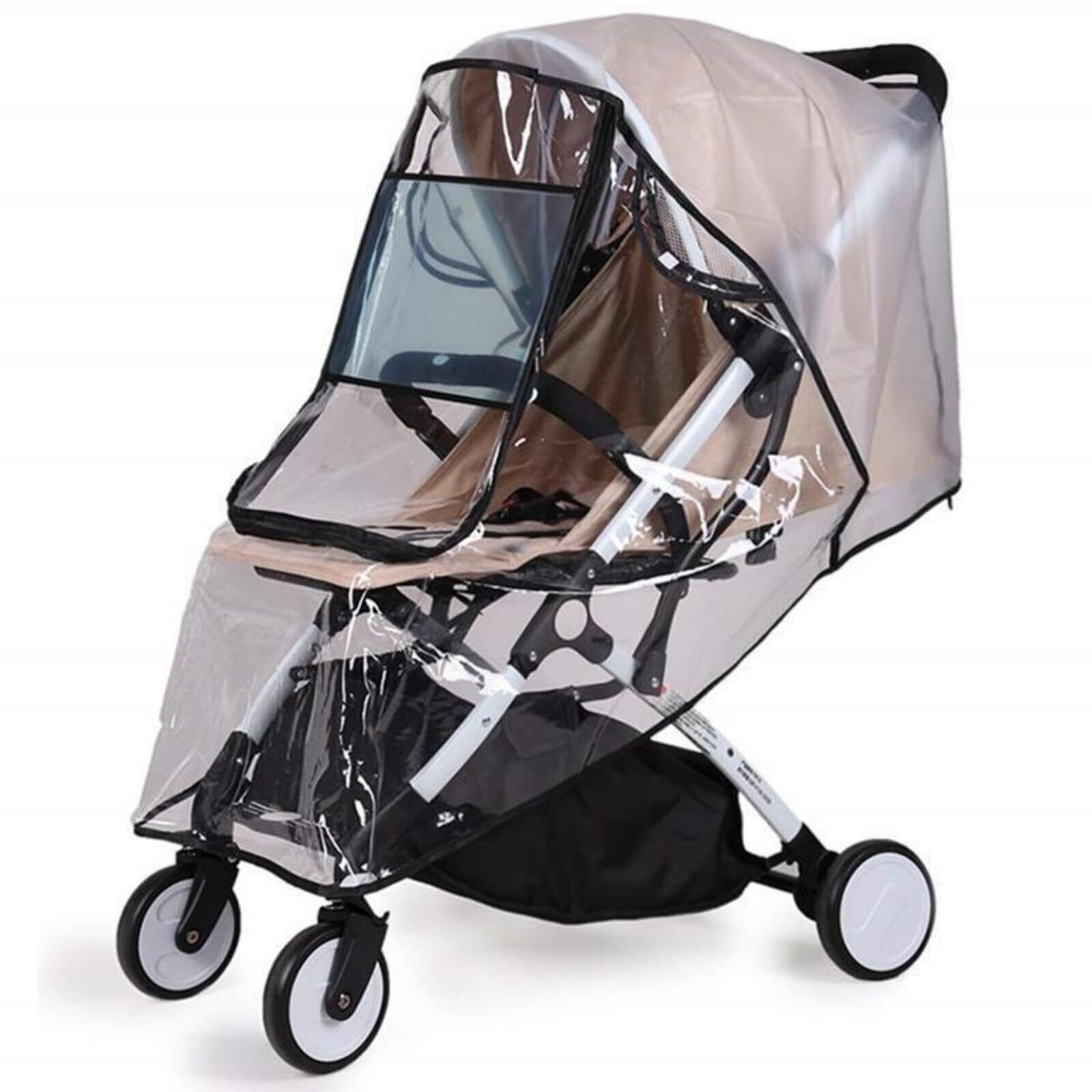 ほとんどの一般的なベビーカーに対応。フロント部分は長めに設計されており、お子さまの足元までしっかりカバーします。