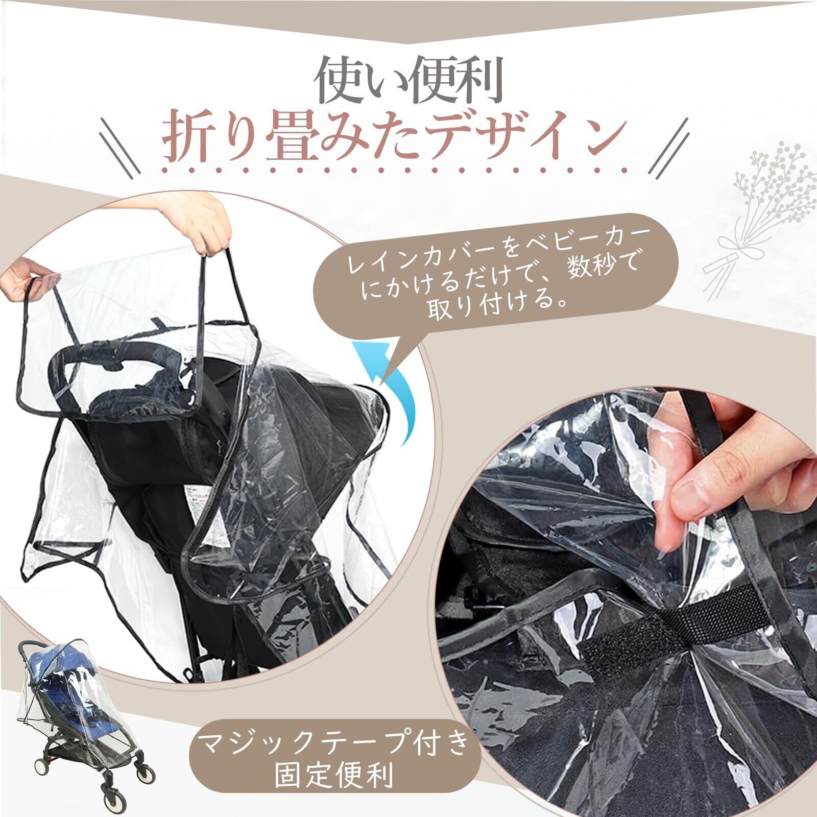 【折り畳みたんで持ち運び、使い便利】ベビーカー カバー 防風は使いやすく、レインカバーをベビーカーにかぶるだけで、数秒で取り付けることができ、簡単でしっかりしています。両側にマジックテープが付いていて、レインカバーをしっかり固定することができます。使わない時は、簡単に分解して折りたたんで収納でき、便利で実用的で、様々な天候に適しています。