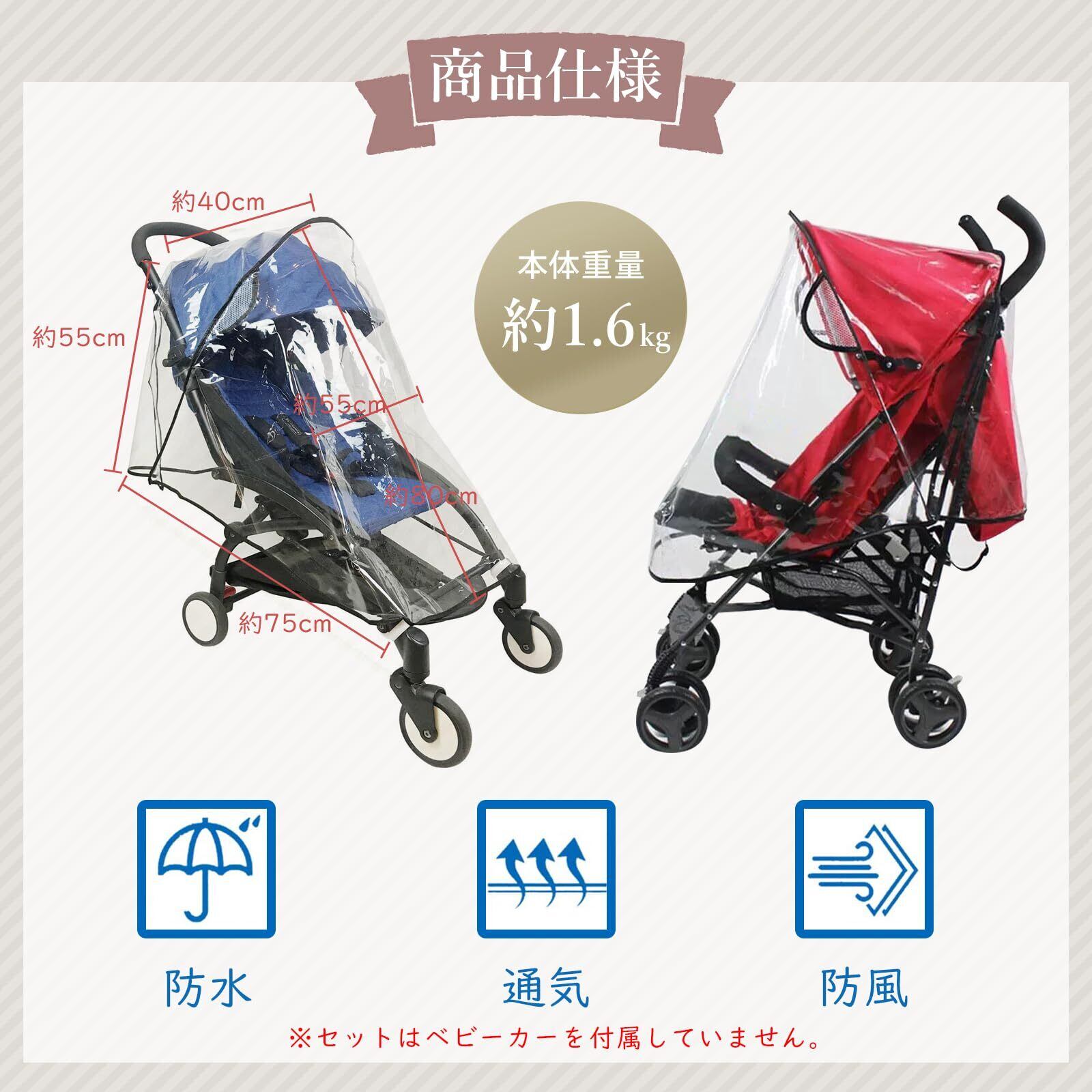 JINGYOU ベビーカー カバー レインカバー ベビーカー用レインカバー 防風 ぼうすい 普遍的 ポータブル 多目的 両側通気 防塵 防花粉 雨除け 雨よけ 透明 1個