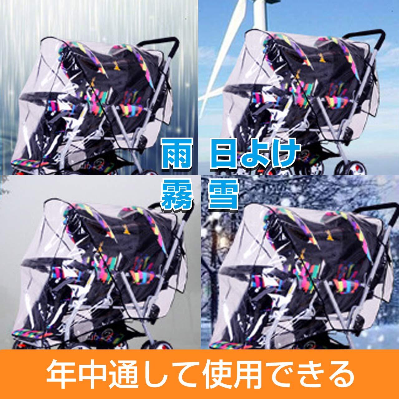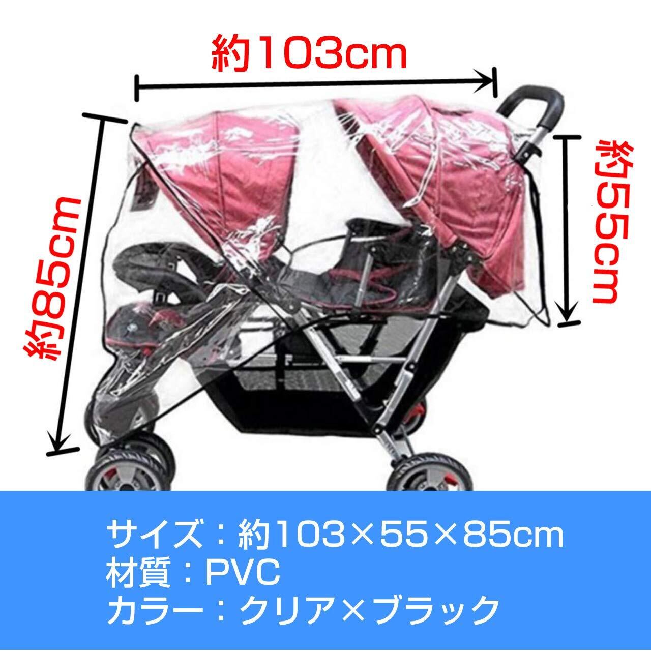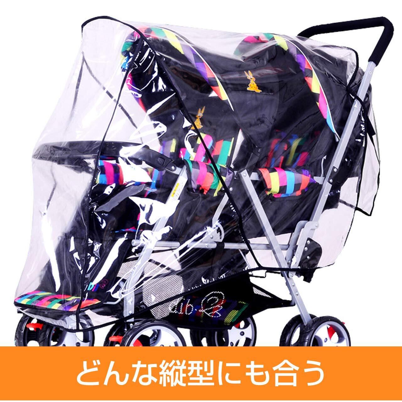 HAMILO 2人乗りベビーカー用 レインカバー レインフード ウインドシールド 縦型 双子 (クリア×ブラック)