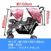【在庫処分】HAMILO 2人乗りベビーカー用 レインカバー レインフード ウインドシールド 縦型 双子 (クリア×ブラック)