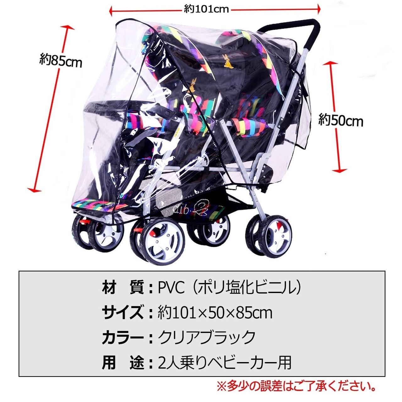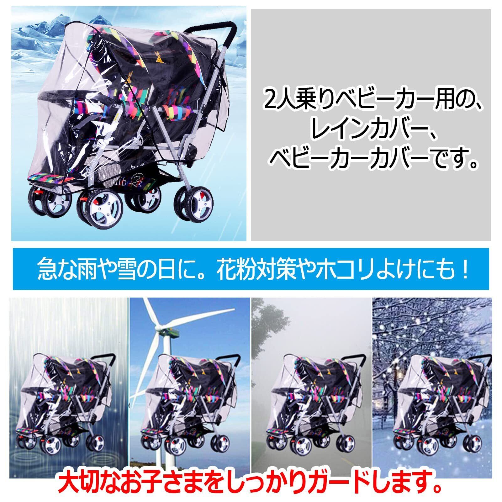 ZERONOWA 2人乗り ベビーカー用 レインカバー 縦型 双子用 二人乗り 雨よけレインカバー (クリア)