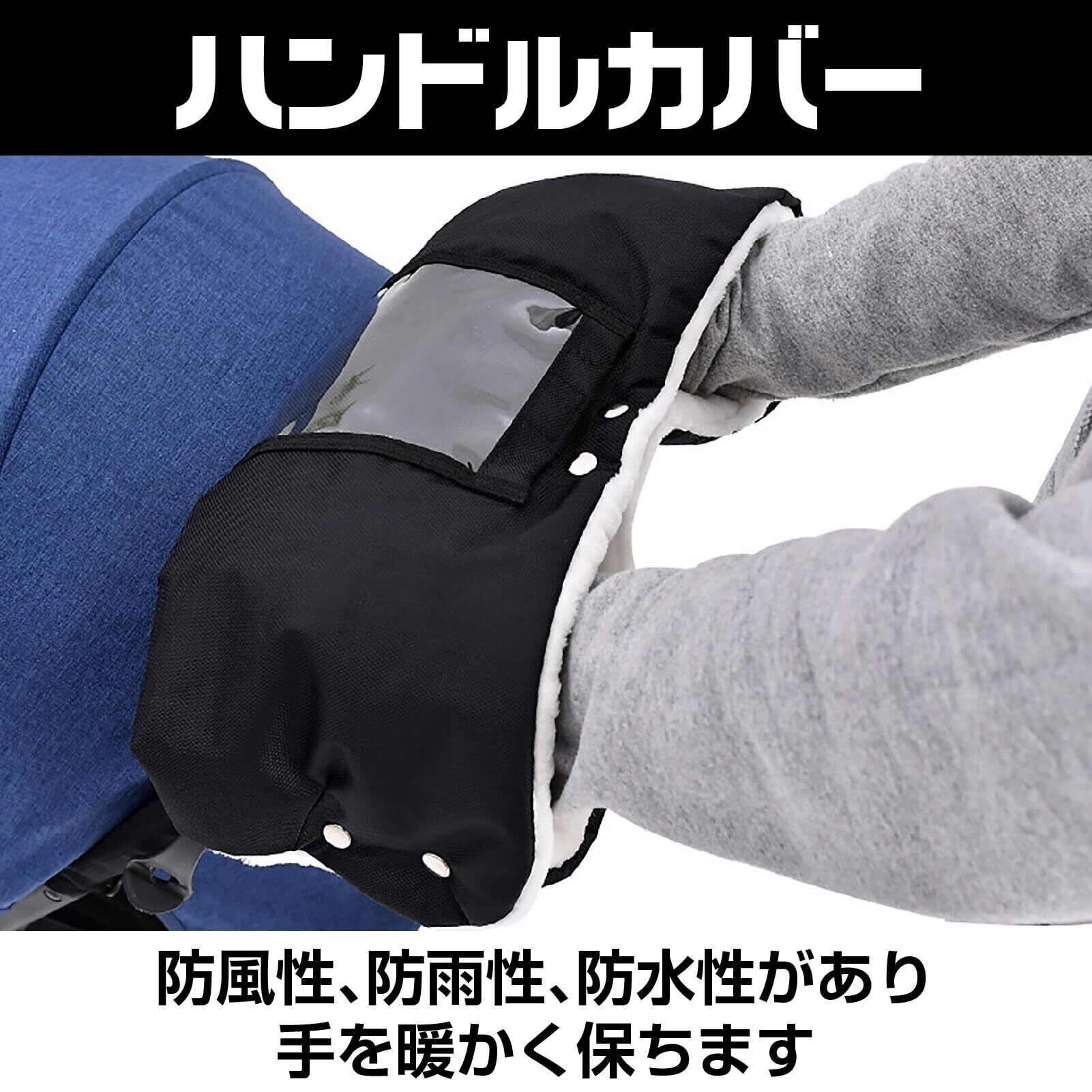 【数量限定】CAWKAY ベビーカー ハンドルカバー スマホ収納袋付 スマートフォン ポケット ハンドウォーマー 手袋 夫婦 撥水仕様 防風 防寒