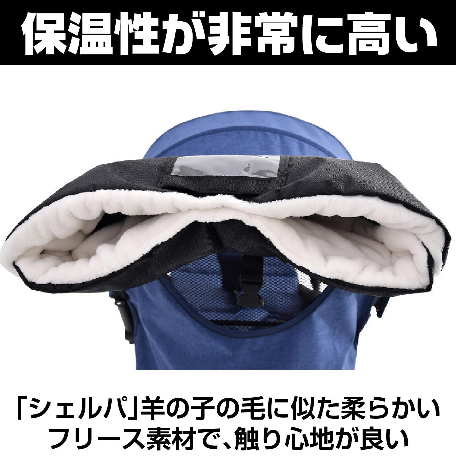 【防風での寒さ対策】 軽い雨や雪の日も安心してご利用いただけます。外側は防水生地、内側は厚手のシェルパ生地で、防寒性に優れた設計です。