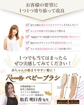 【こだわり】様々なメーカーから 赤ちゃん用 や 乳幼児用 のブラシ用品として” ヘアブラシ ”が販売されていますが、Rozallyの ベビー用ブラシ は”こだわり”が一味違います。 赤ちゃん用ヘアブラシ や 赤ちゃん用ブラシ の関連製品 などメインに取り扱っている10社以上の工場からサンプルを取り寄せ、「肌触り×傷つけない先端加工」を一緒に試行錯誤して頂けた1社に絞って発注を行なっています。