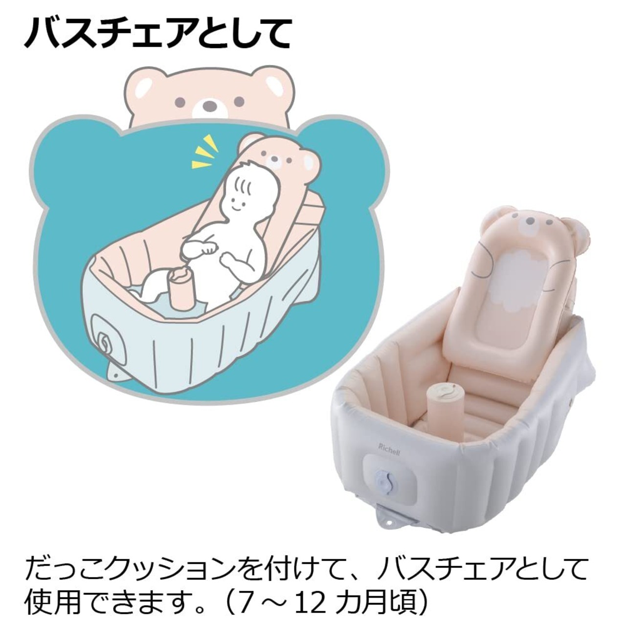 ベビーバスとして、ワンオペお風呂の赤ちゃん待機場として、バスチェアとして成長に合わせて長く使えるリッチェルのベビーバスです。