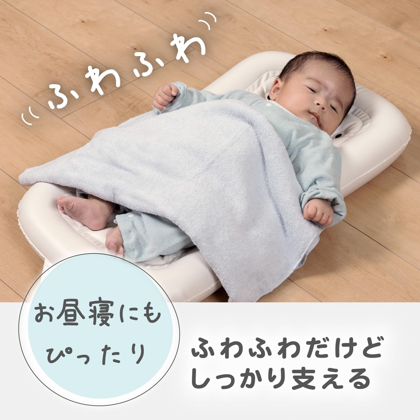 【お風呂場でも湯上りにも】お風呂場で赤ちゃんを寝かせて洗うことができます。湯上がりのマットやお昼寝などにもご使用いただけます。