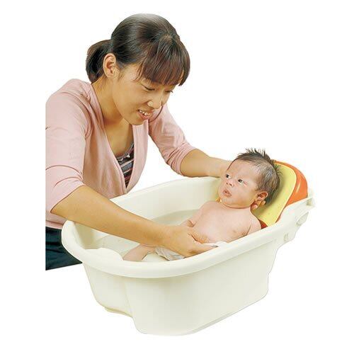 新生児~1ヵ月ごろはベビーバスとして、1ヵ月ごろ~3ヵ月頃からはバスチェアとして使用できます。