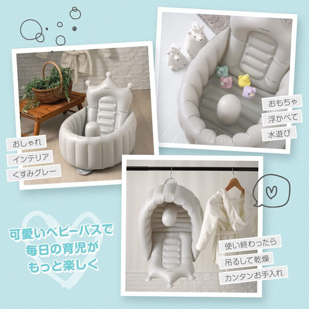 新生児から使えるふわふわ素材のベビーバスです。空気で膨らませるエアータイプで、浮き輪のように軽くやわらか。赤ちゃんの体にあたっても痛くありません。他にないクラウンデザインで、赤ちゃんも小さな王様気分!