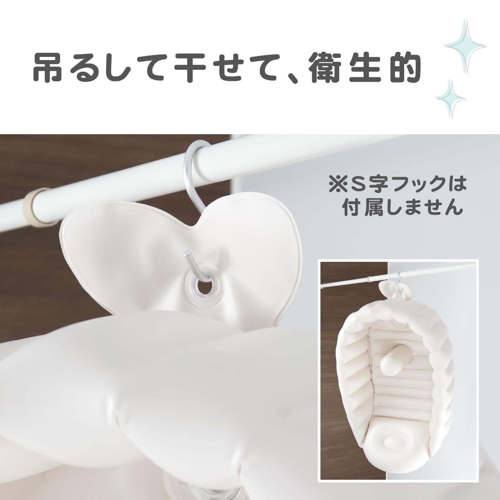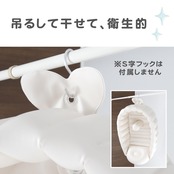 フック穴付。立てかけて置いたり、吊るして干したりすることができるため、片付けがより簡単でカビにくいです