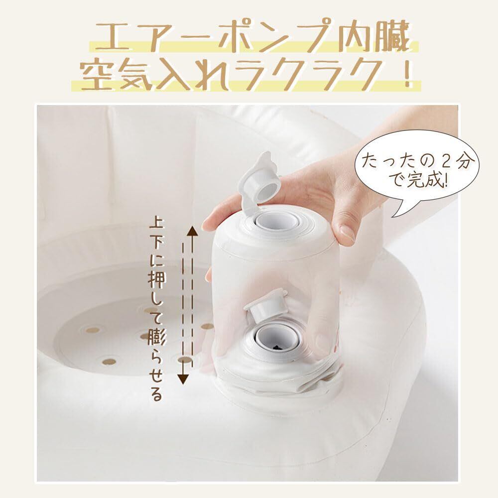 【携帯便利・広い使用場合】お風呂や屋内はもちろん、空気入れるタイプため、屋外でも使えます。座面には排水孔があるので、快適通気、赤ちゃんが蒸し暑い思いをしません。水分が溜まりにくく、赤ちゃんのお風呂にも使えます。折りたたみ式の設計、持ち運びが簡単で旅行やレジャーにも最適です。